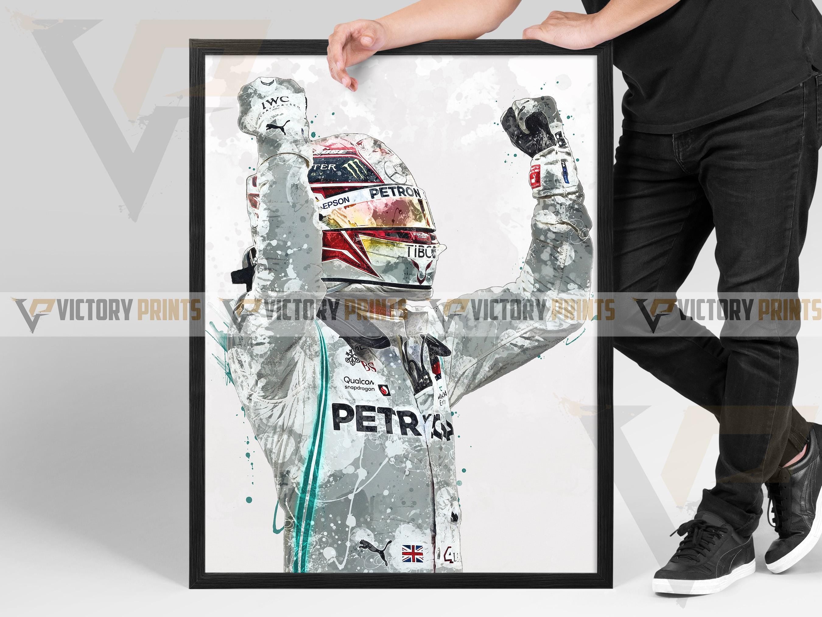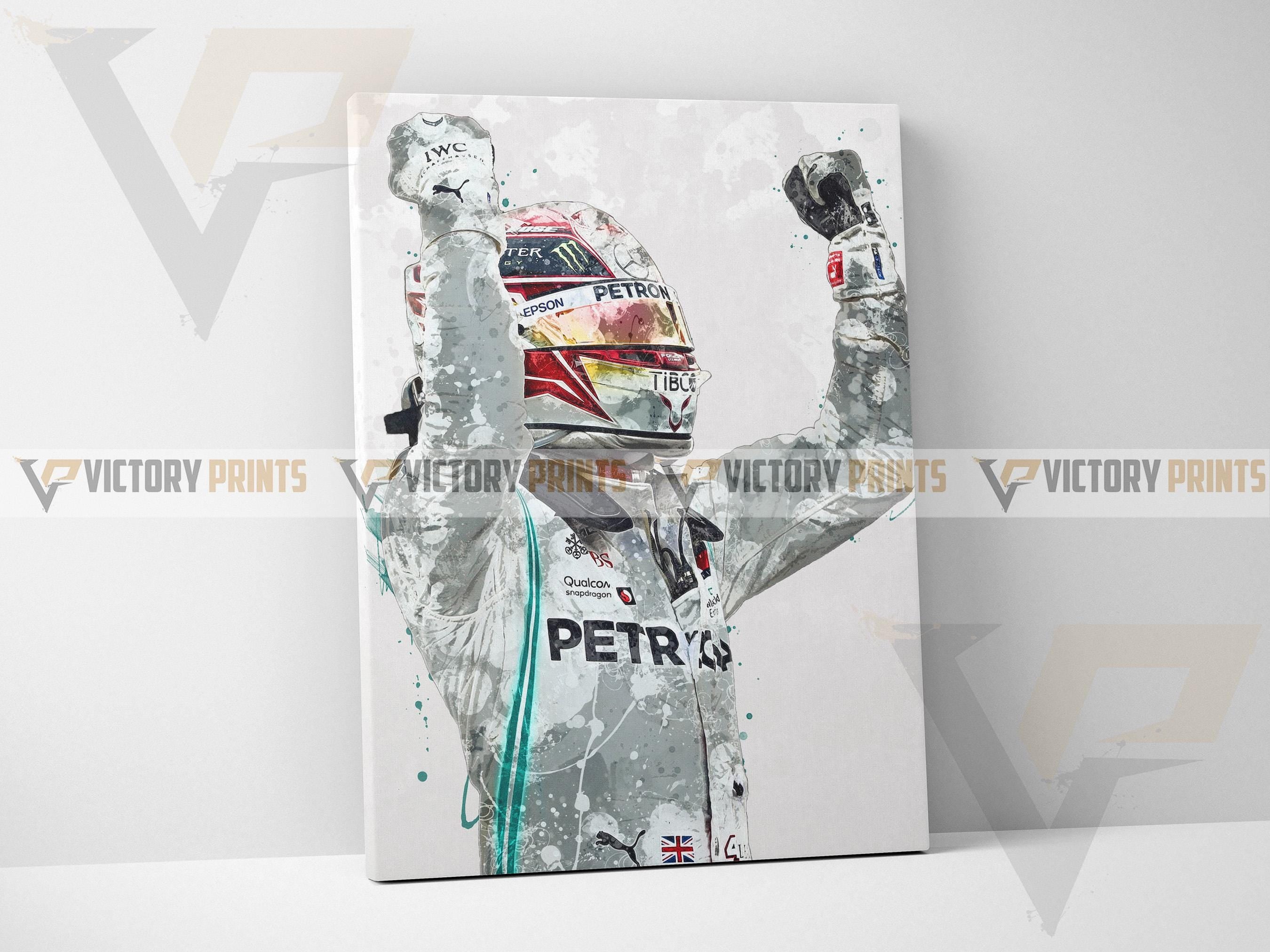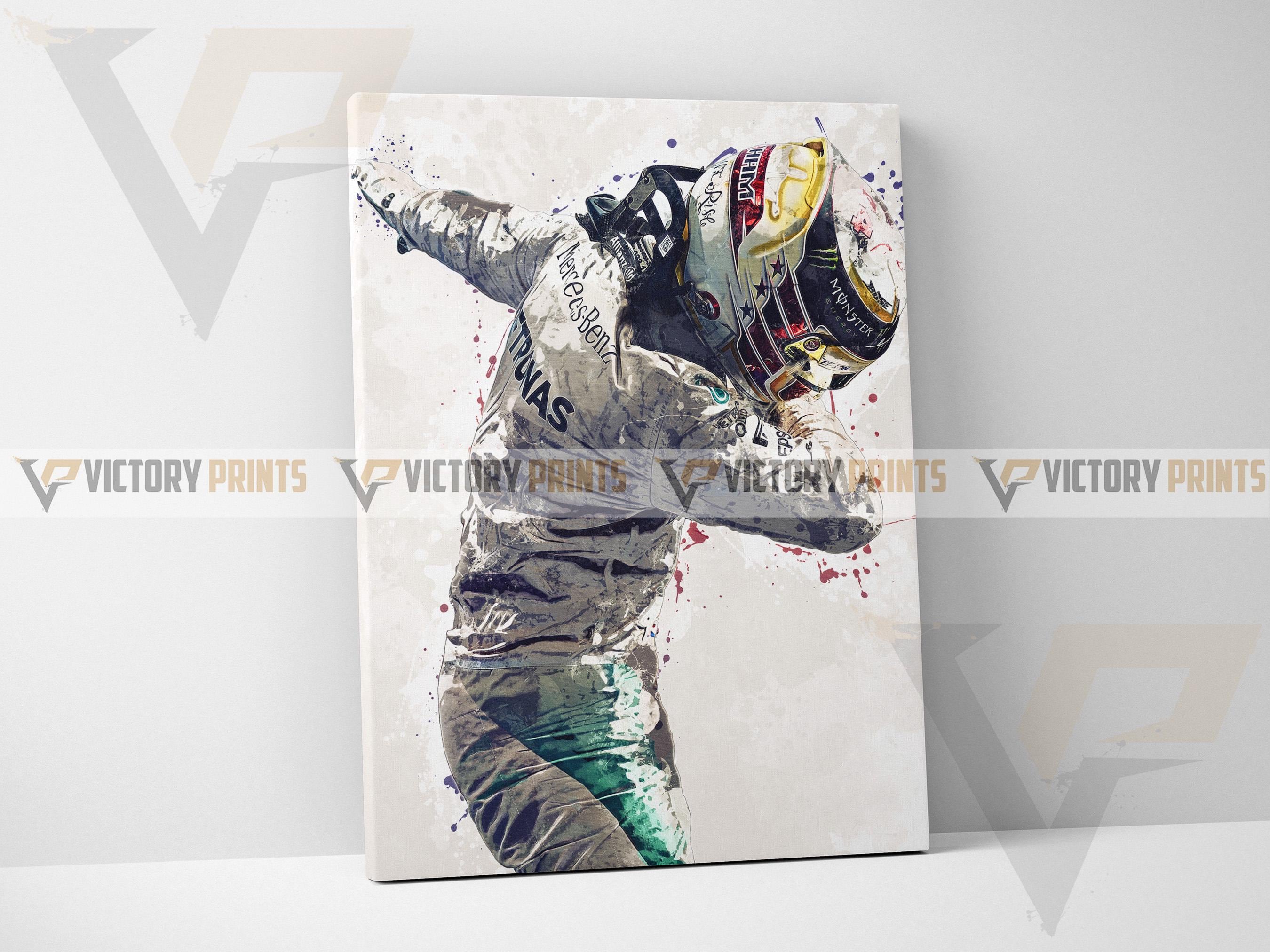 Lewis Hamilton Celebration Poster/Canvas | Man Cave Art, Sports Room Decor, Digital Files Available