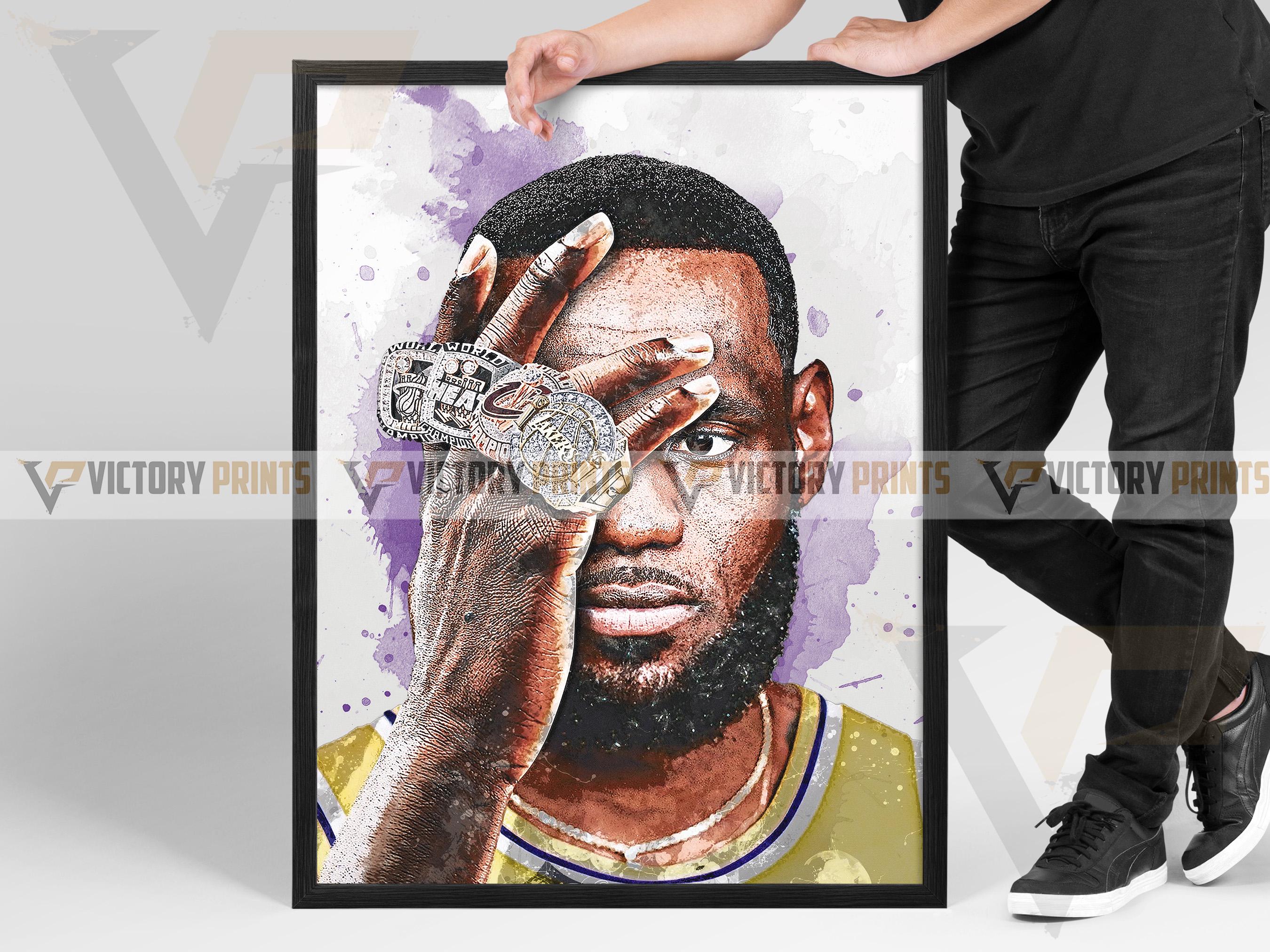 Lebron James 4 Championship Rings Poster/Canvas | Basketball Man Cave Art, Basketball Sports Room Decor, Fan gifts, Digital Download