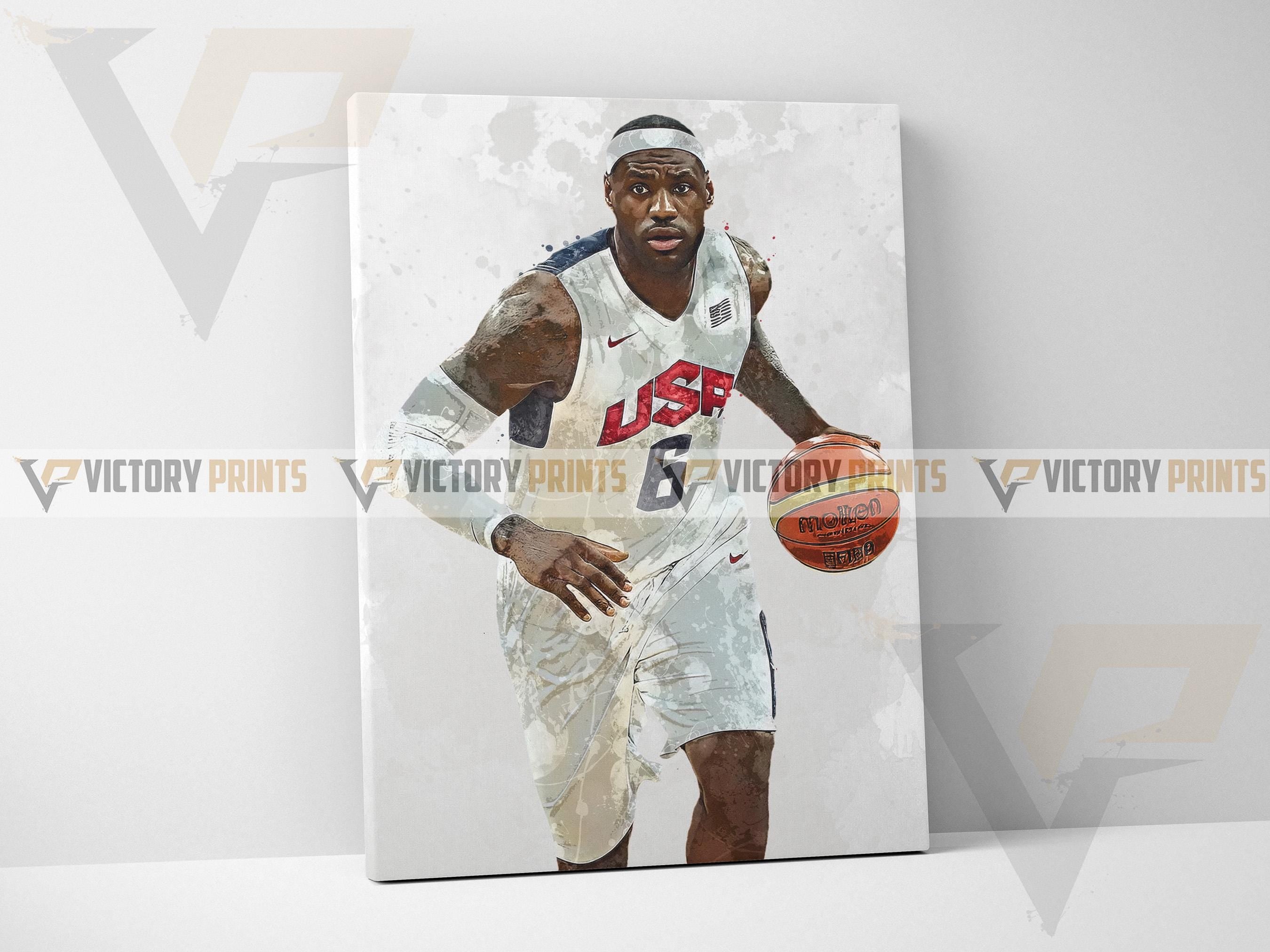 Lebron James Team USA Poster/Canvas | Basketball Man Cave Art, Basketball Sports Room Decor, Fan gifts, Digital Download