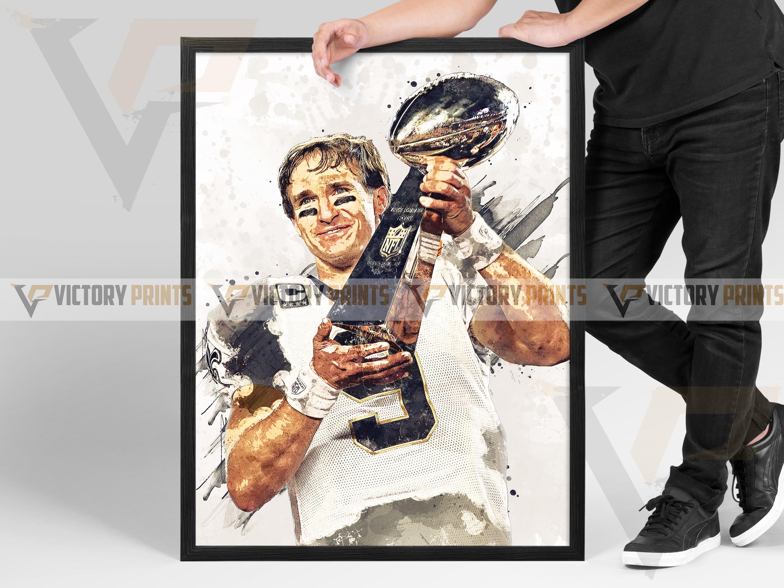 Drew Brees Super Bowl Poster/Canvas | Football Man Cave Art, Sports Room Decor, Digital Files Available