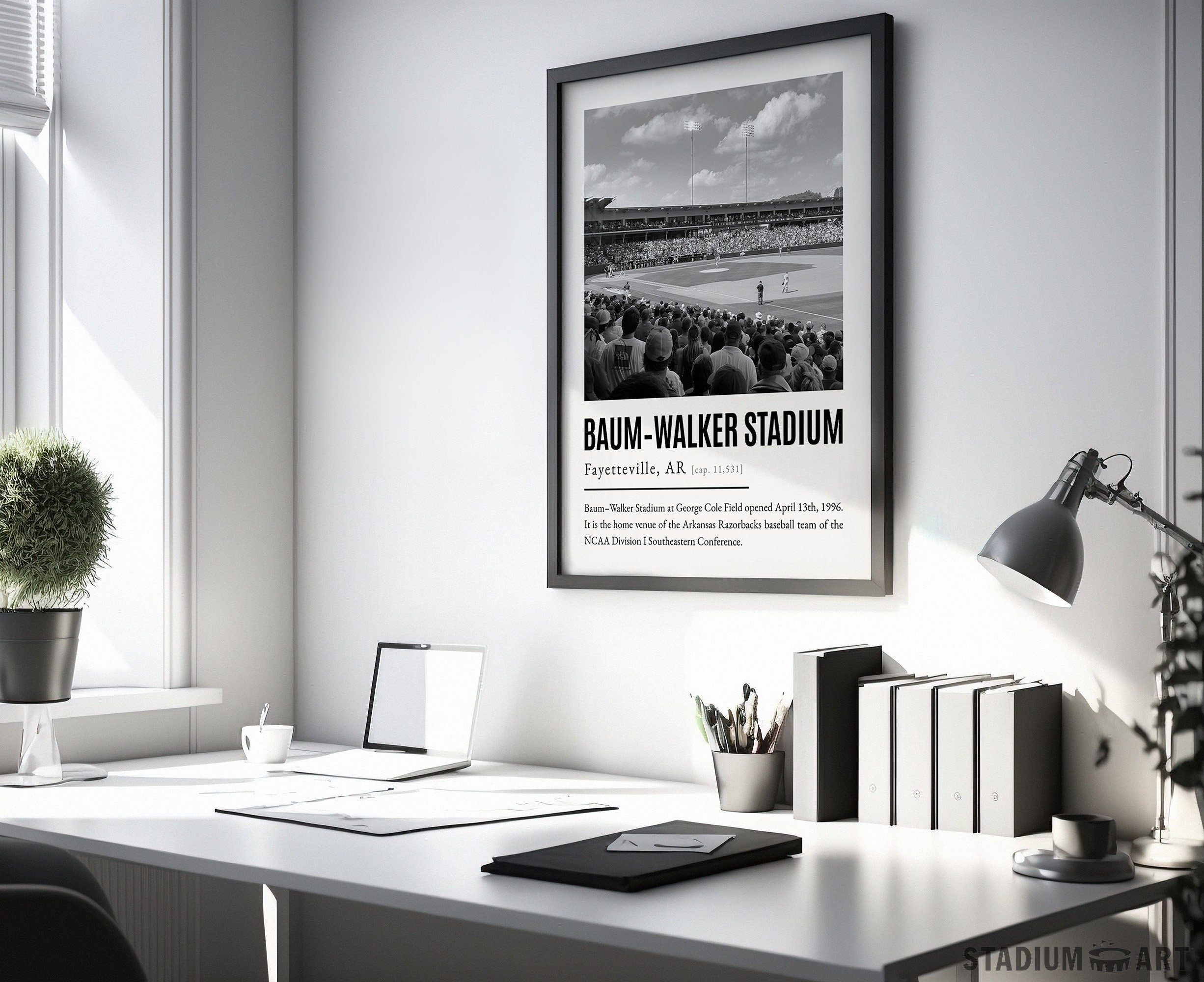 Baum-Walker Stadium Print, Arkansas Razorbacks Poster/Canvas, Seat View, B&W Modern Art, Baseball Home Decor, Game Day Keepsake