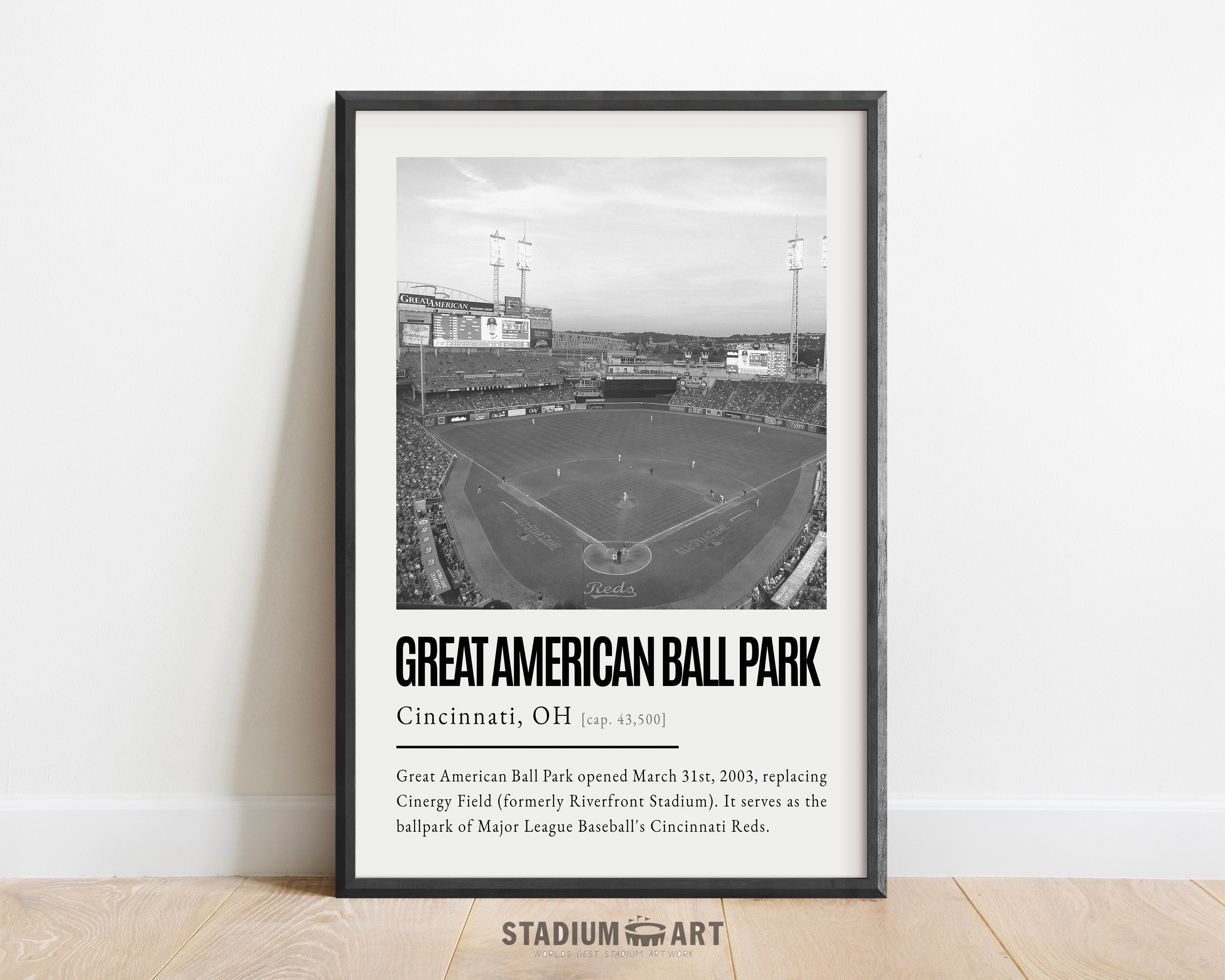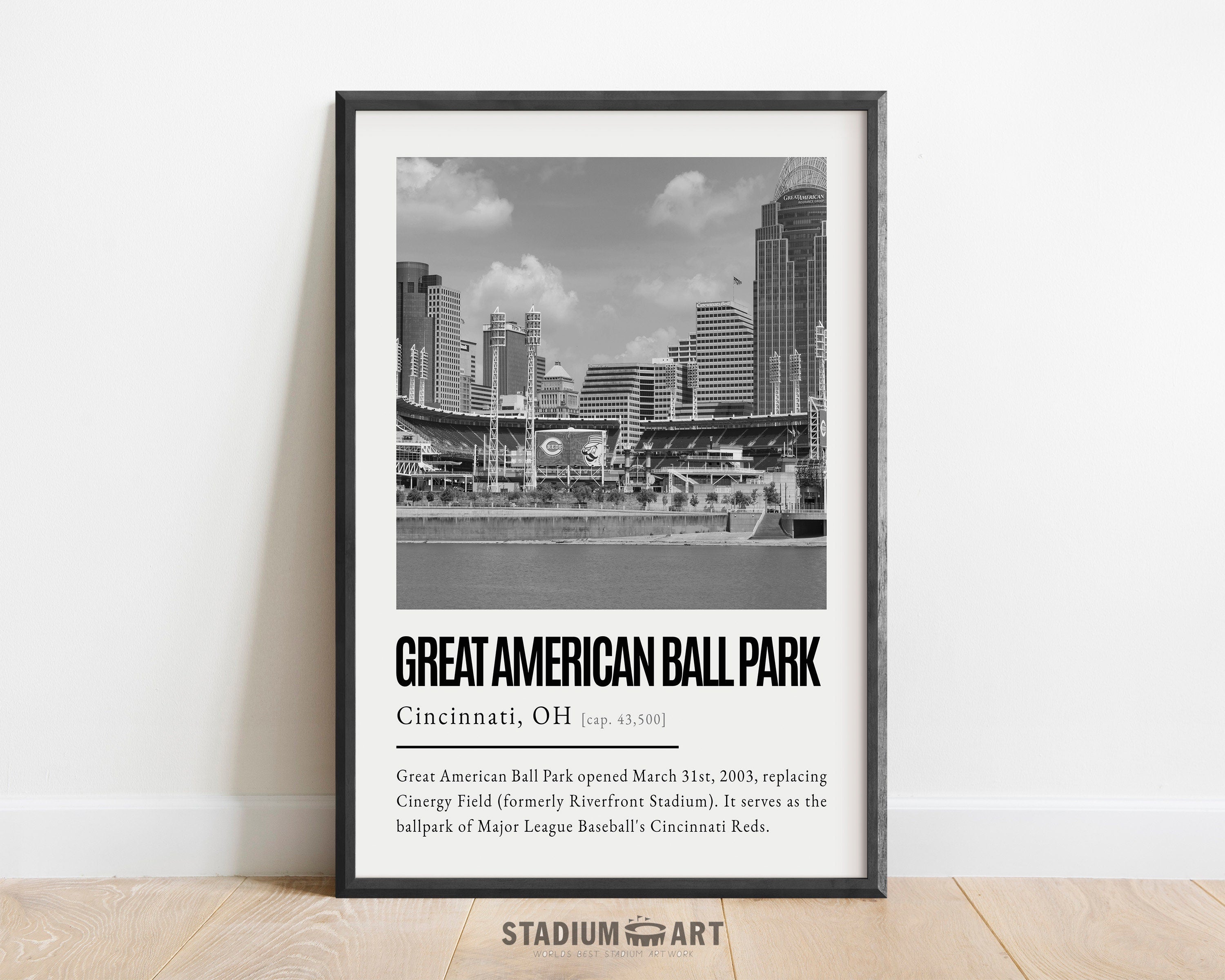 Great American Ball Park Print, Cincinnati Reds Poster/Canvas, Seat View, B&W Modern Art, Baseball Home Decor, Game Day Keepsake