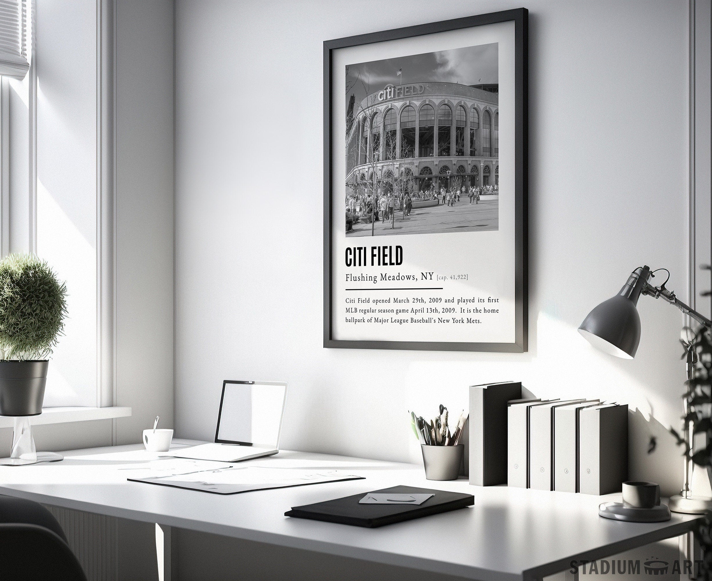 Citi Field Print, New York Mets Poster/Canvas, Front View, B&W Modern Art, Baseball Home Decor, Game Day Keepsake