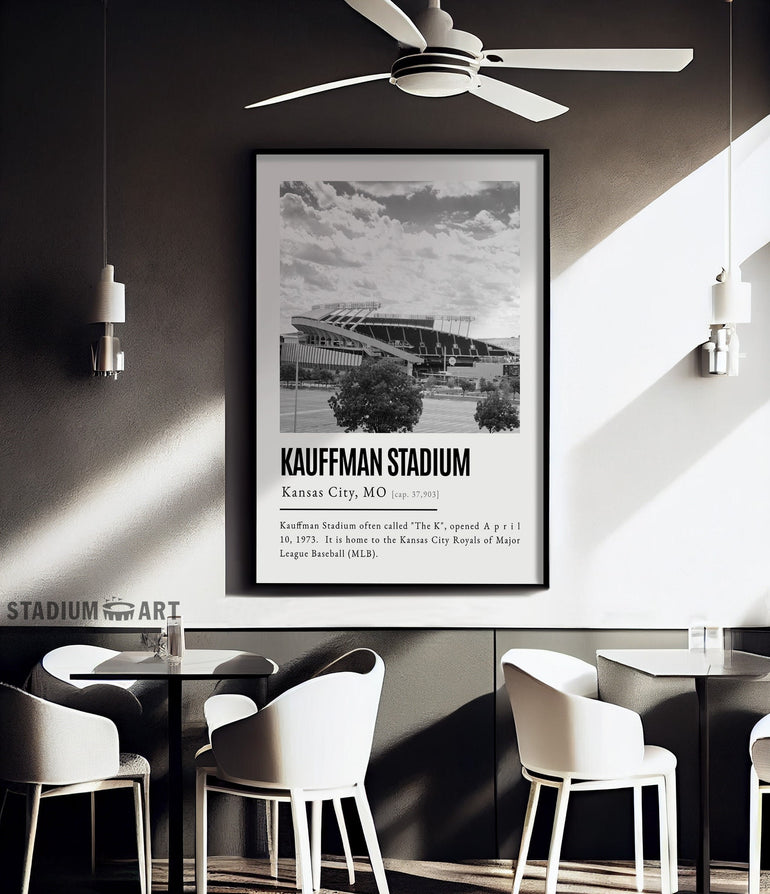 Kauffman Stadium Print, Kansas City Royals Poster/Canvas, Aerial View, B&W Modern Art, Baseball Home Decor, Game Day Keepsake