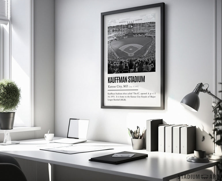 Kauffman Stadium Print, Kansas City Royals Poster/Canvas, Seat View, B&W Modern Art, Baseball Home Decor, Game Day Keepsake