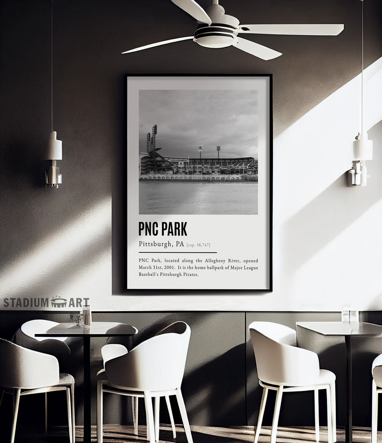 PNC Park Print, Pittsburgh Pirates Poster/Canvas, Front View, B&W Modern Art, Baseball Home Decor, Game Day Keepsake