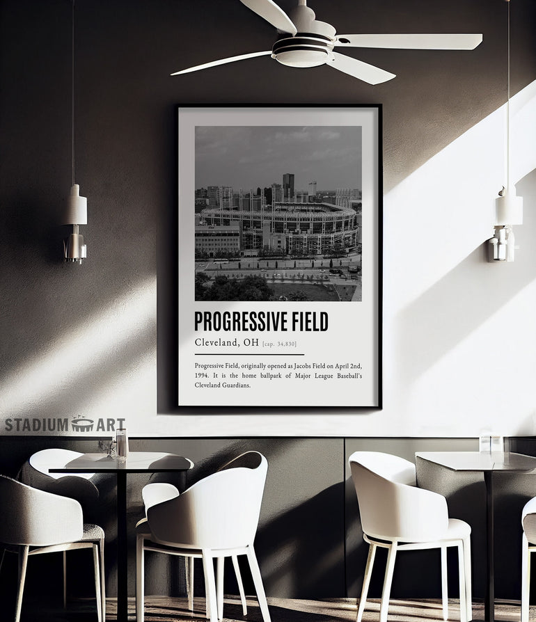 Progressive Field Print, Cleveland Guardians Poster/Canvas, Aerial View, B&W Modern Art, Baseball Home Decor, Game Day Keepsake