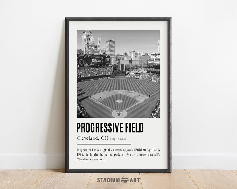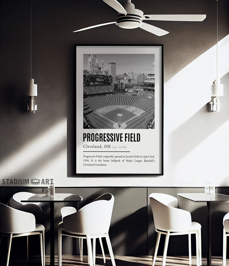 Progressive Field Print, Cleveland Guardians Poster/Canvas, Seat View, B&W Modern Art, Baseball Home Decor, Game Day Keepsake