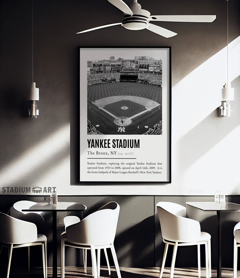 Yankees Stadium Print, New York Yankees Poster/Canvas, Seat View, B&W Modern Art, Baseball Home Decor, Game Day Keepsake