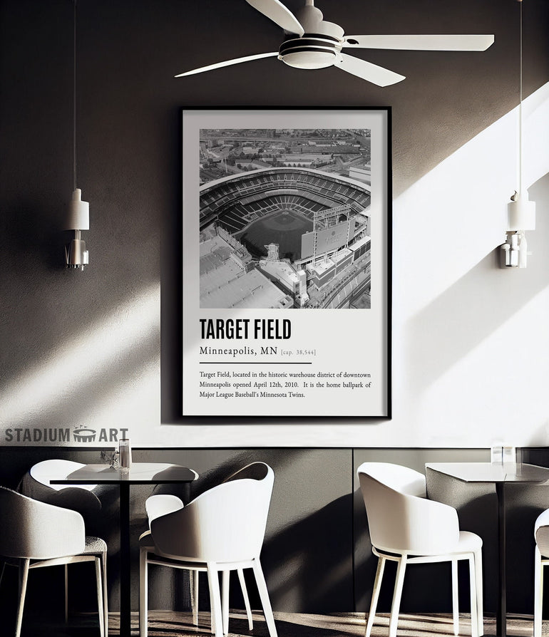 Target Field Print, Minnesota Twins Poster/Canvas, Aerial View, B&W Modern Art, Baseball Home Decor, Game Day Keepsake