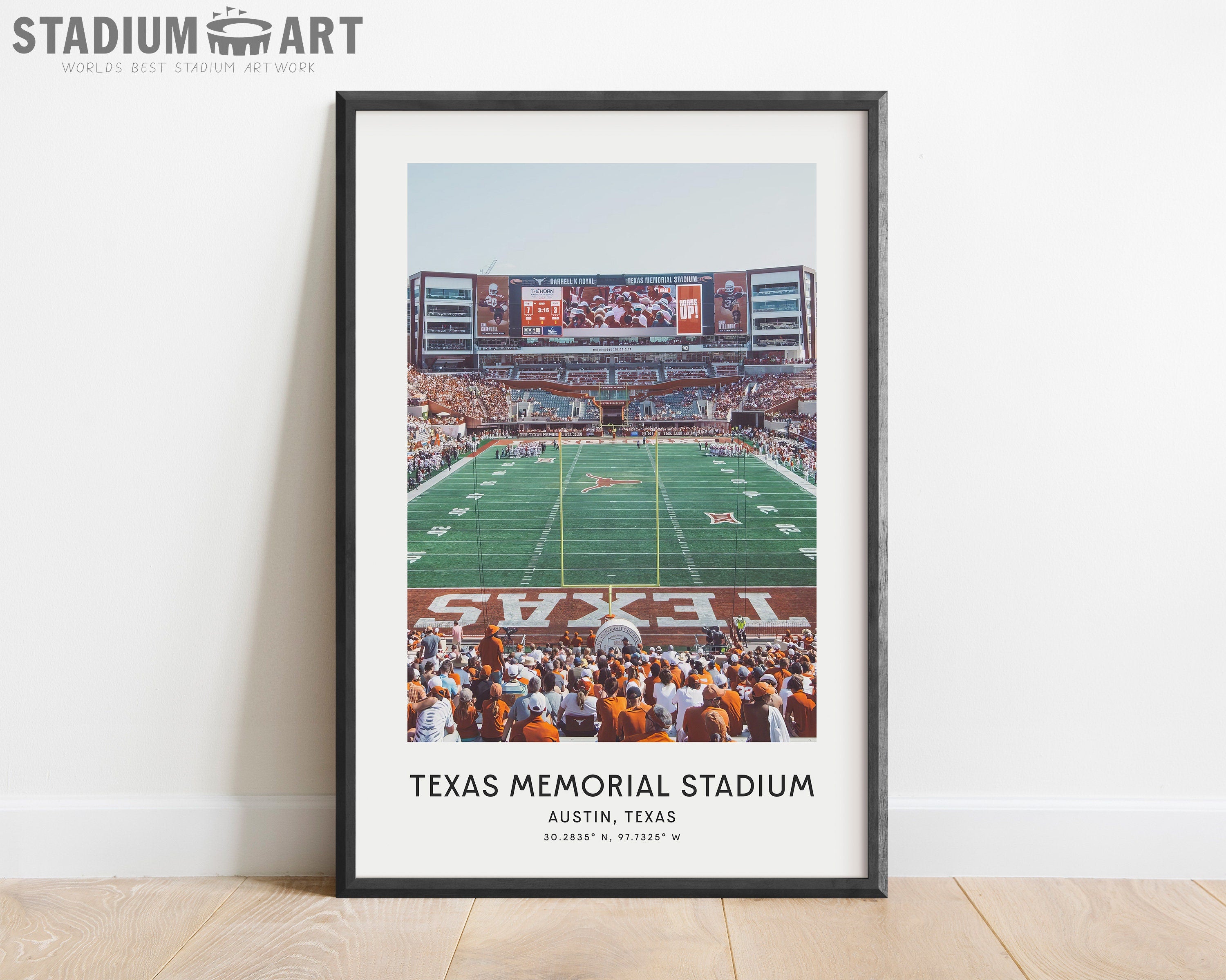 Texas Memorial Stadium Print, Longhorns Poster/Canvas, GPS College Football Stadium, Modern Travel Art, Football Fan, Office & Kids Room Decor