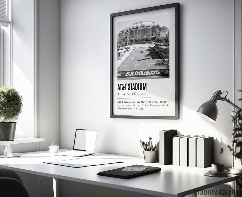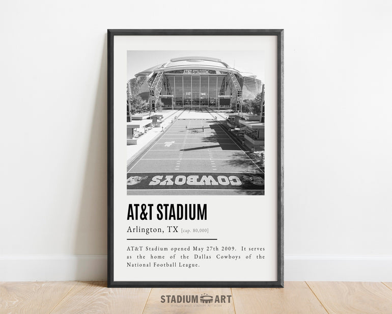 ATT Stadium Print, Dallas Cowboys Poster/Canvas, Street View, B&W Modern Art, Football Wall Art Decor, Game Day Keepsake
