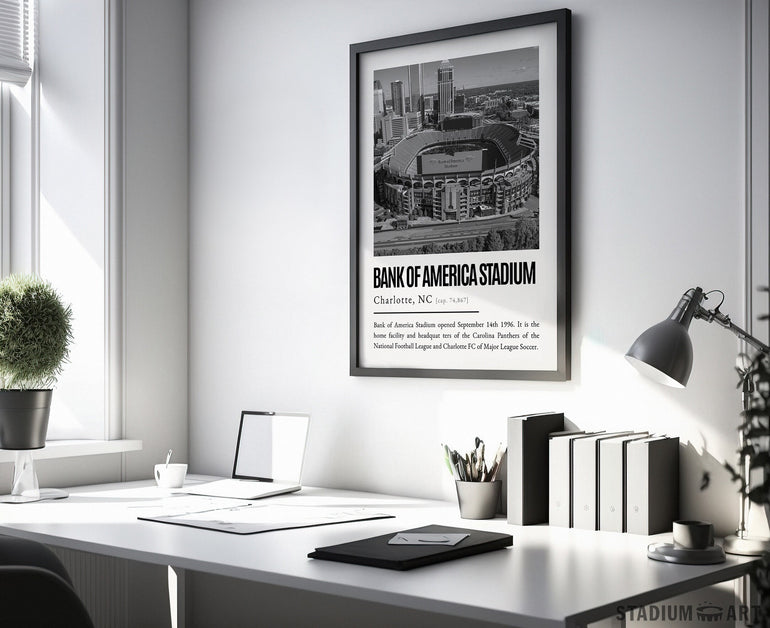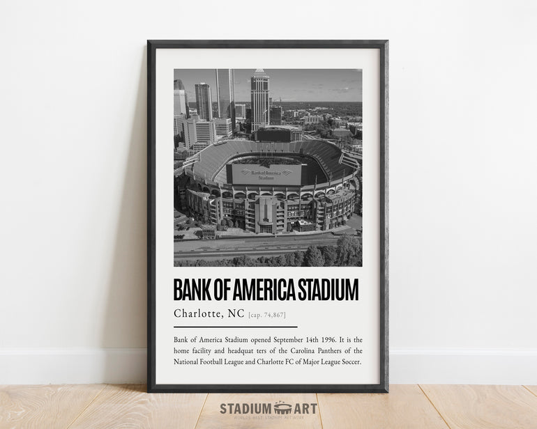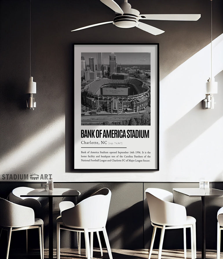Bank Of America Stadium Print, Carolina Panthers Poster/Canvas, Aerial View (v2), B&W Modern Art, Football Wall Art Decor, Game Day Keepsake