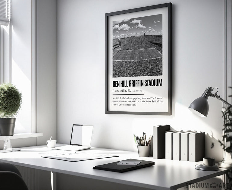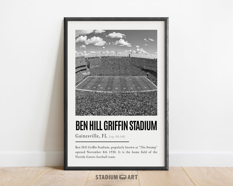 Ben Hill Griffin Stadium Print, Florida Gators Poster/Canvas, Seat View (v2), B&W Modern Art, Football Wall Art Decor, Game Day Keepsake