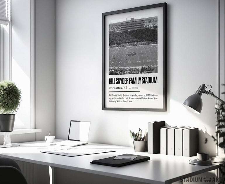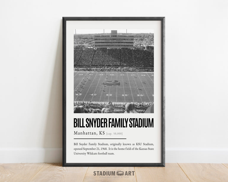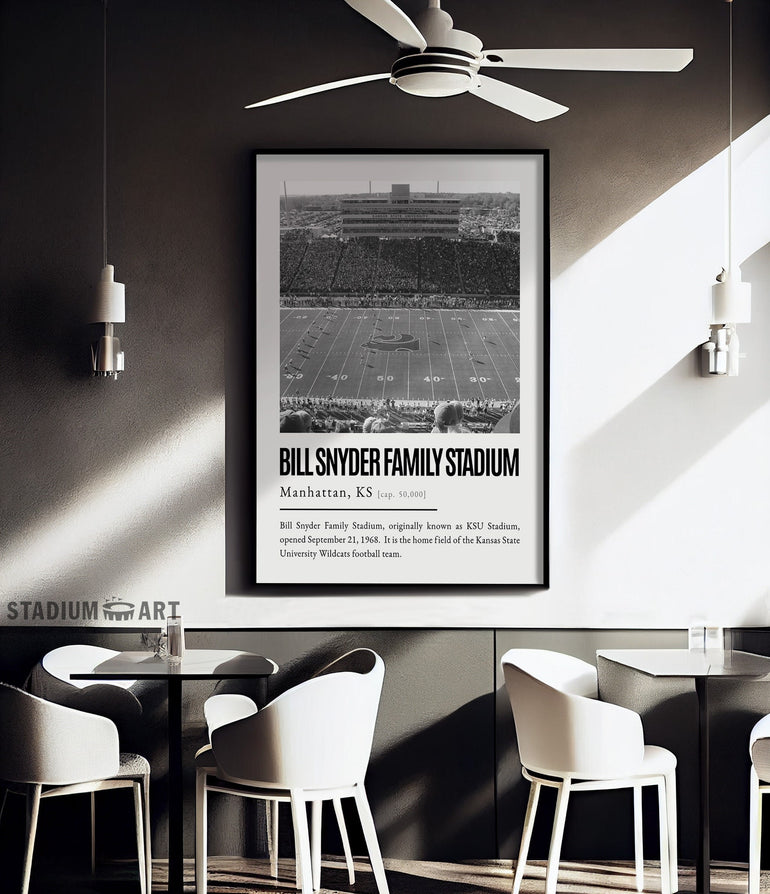 Bill Snyder Family Stadium Print, Kansas State Wildcats Poster/Canvas, Seat View, B&W Modern Art, Football Wall Art Decor, Game Day Keepsake