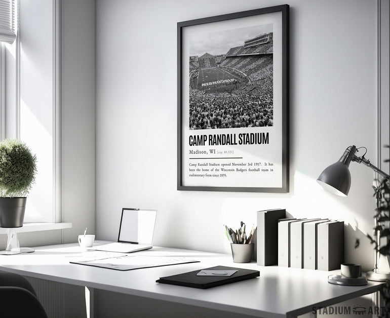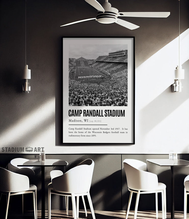 Camp Randall Stadium Print, Wisconsin Badgers Poster/Canvas, Seat View, B&W Modern Art, Football Wall Art Decor, Game Day Keepsake