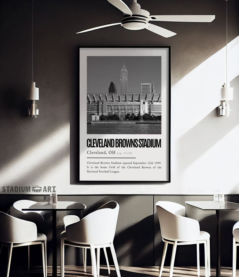 Cleveland Browns Stadium Print, Cleveland Browns Poster/Canvas, Aerial View, B&W Modern Art, Football Wall Art Decor, Game Day Keepsake