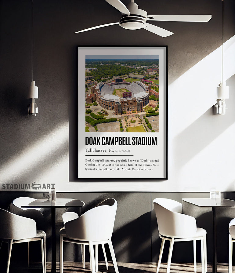 Doak Campbell Stadium Print, Florida State Seminoles Poster/Canvas, Aerial View, Modern Art, Football Wall Art Decor, Game Day Keepsake