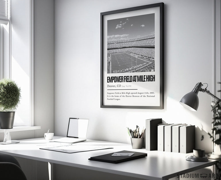 Empower Field at Mile High Print, Denver Broncos Poster/Canvas, Seat View, B&W Modern Art, Football Wall Art Decor, Game Day Keepsake