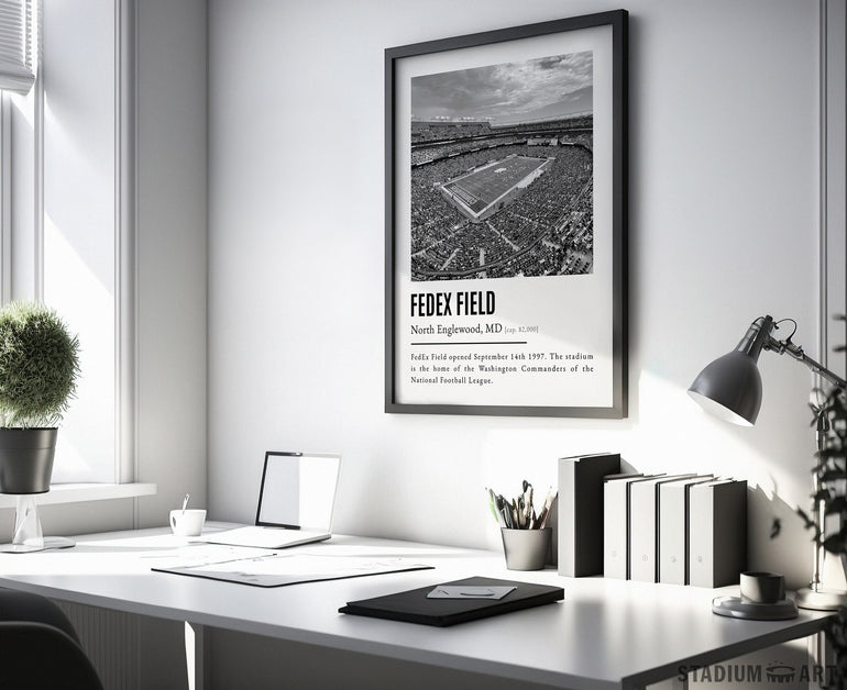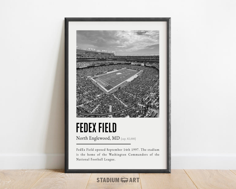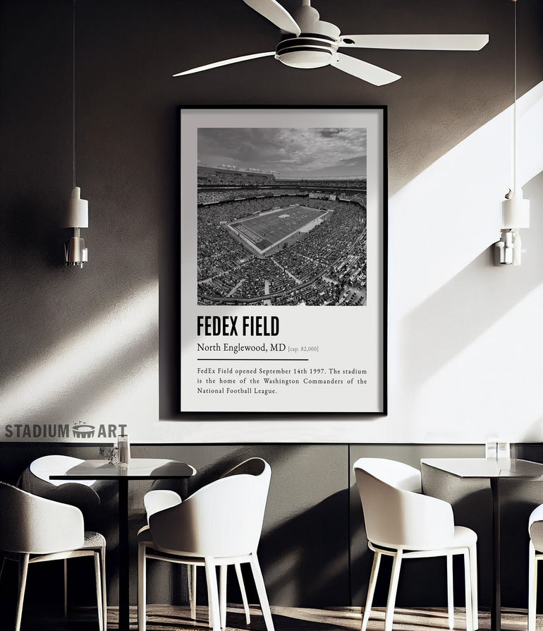 FedEx Field Print, Washington Commanders Poster/Canvas, Seat View (v2), B&W Modern Art, Football Wall Art Decor, Game Day Keepsake
