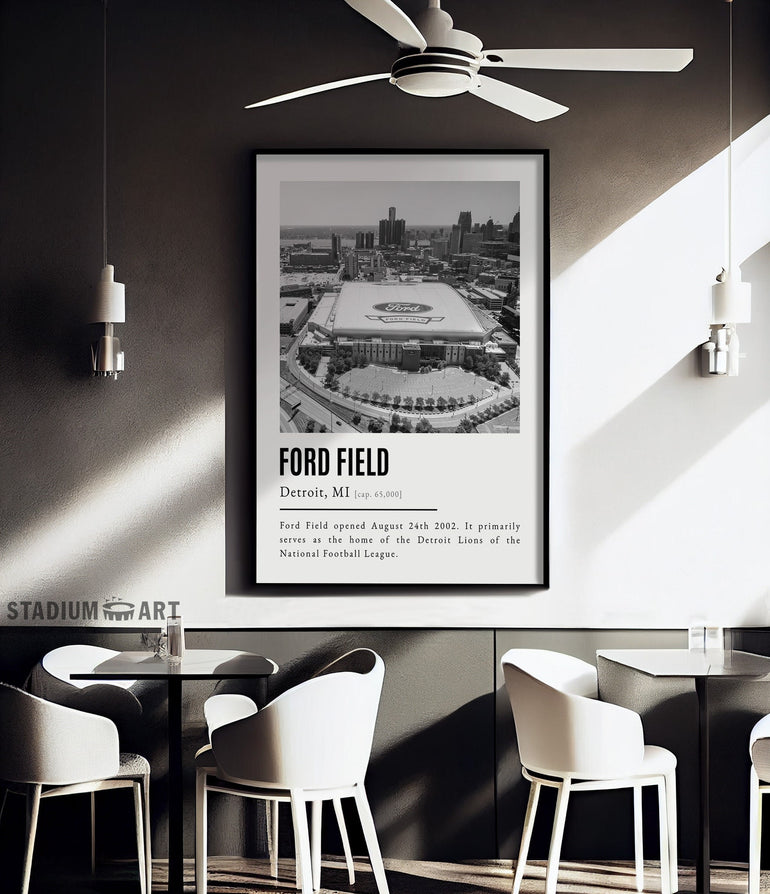 Ford Field Print, Detroit Lions Poster/Canvas, Aerial View, B&W Modern Art, Football Wall Art Decor, Game Day Keepsake