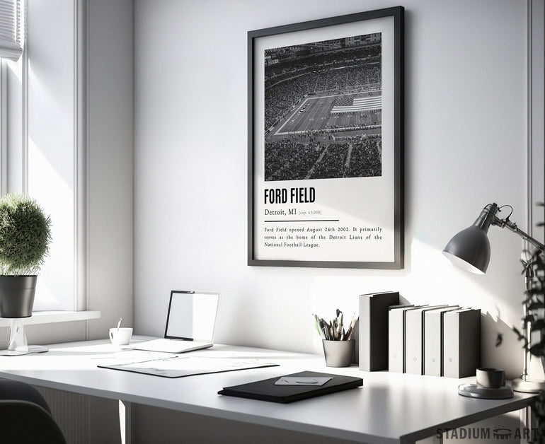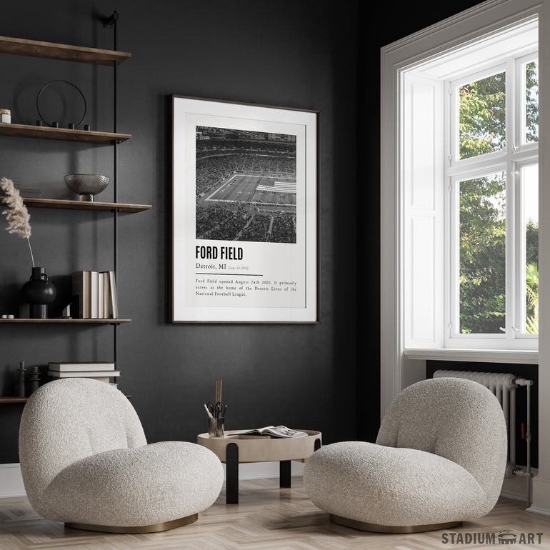 Ford Field Print, Detroit Lions Poster/Canvas, Seat View (v2), B&W Modern Art, Football Wall Art Decor, Game Day Keepsake