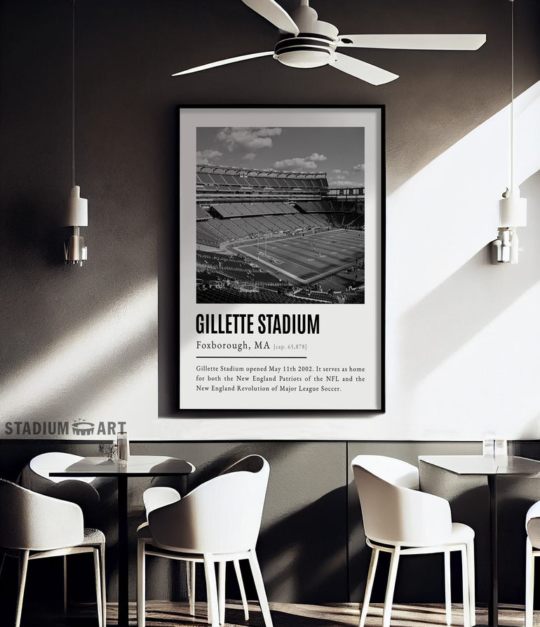 Gillette Stadium Print, New England Patriots Poster/Canvas, Seat View (v2), B&W Modern Art, Football Wall Art Decor, Game Day Keepsake