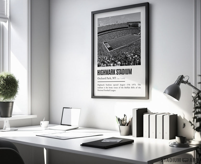 Highmark Stadium Print, Buffalo Bills Poster/Canvas, Seat View (v2), B&W Modern Art, Football Wall Art Decor, Game Day Keepsake