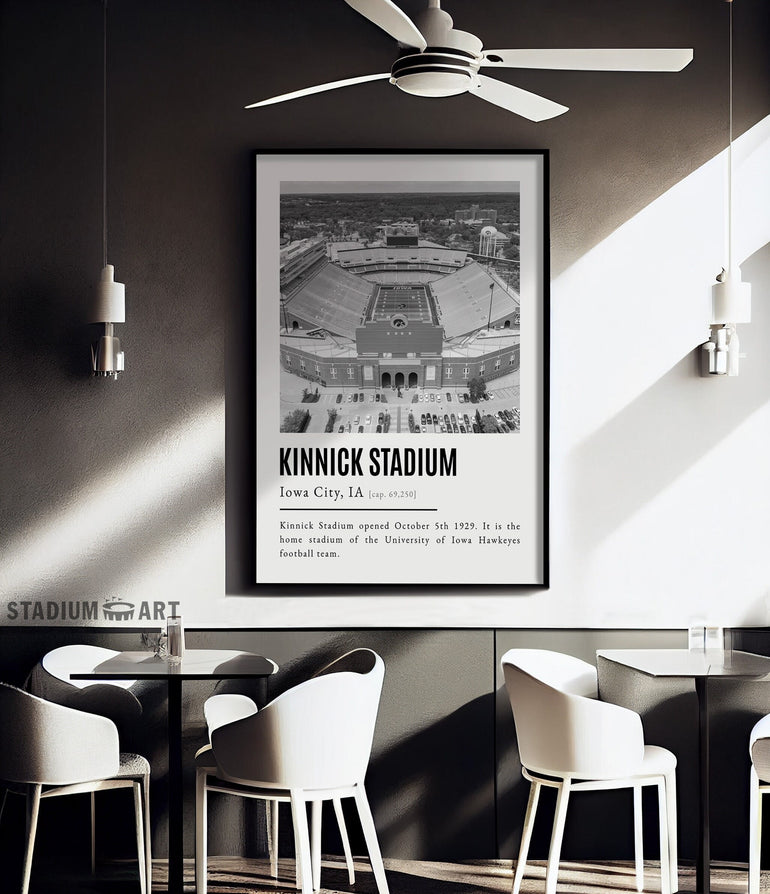 Kinnick Stadium Print, Iowa Hawkeyes Poster/Canvas, Aerial View (v2), B&W Modern Art, Football Wall Art Decor, Game Day Keepsake