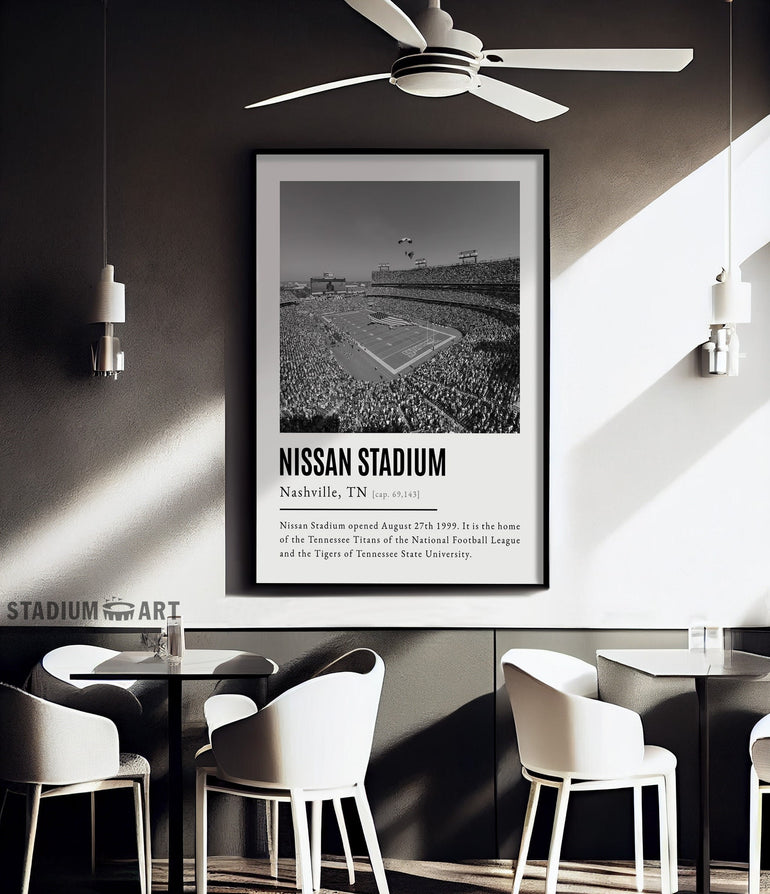 Nissan Stadium Print, Tennessee Titans Poster/Canvas, Seat View, B&W Modern Football Wall Art Decor, Game Day Keepsake
