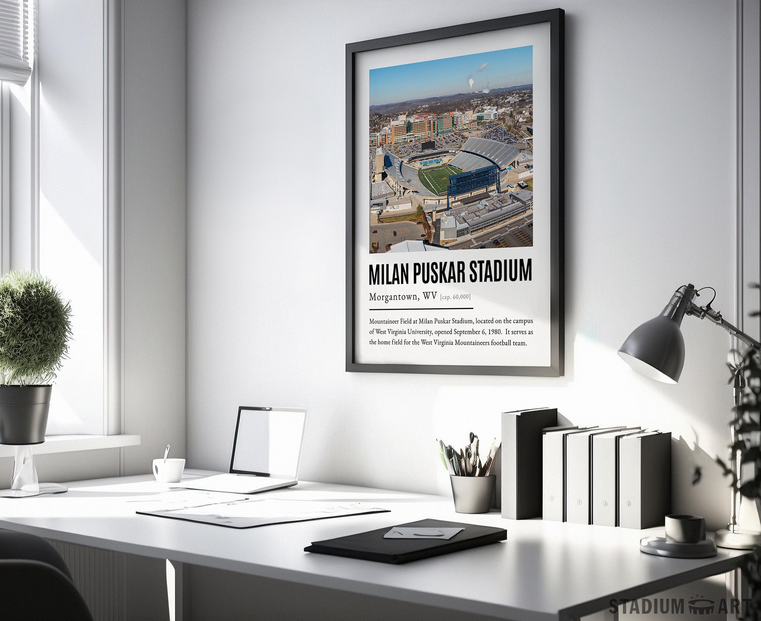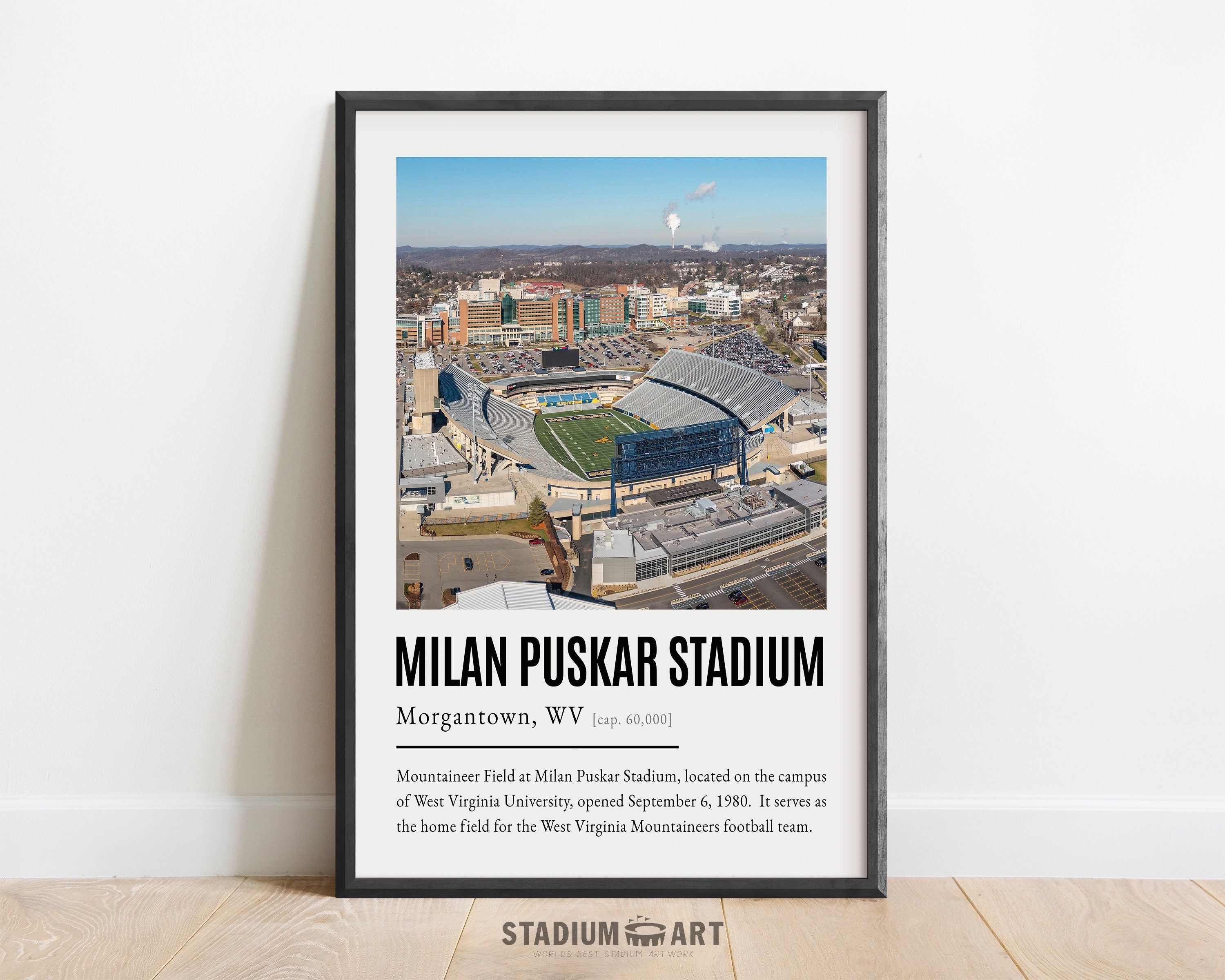 Milan Puskar Stadium Print, Virginia Mountaineers Poster/Canvas, Aerial View, Modern Football Wall Art Decor, Game Day Keepsake