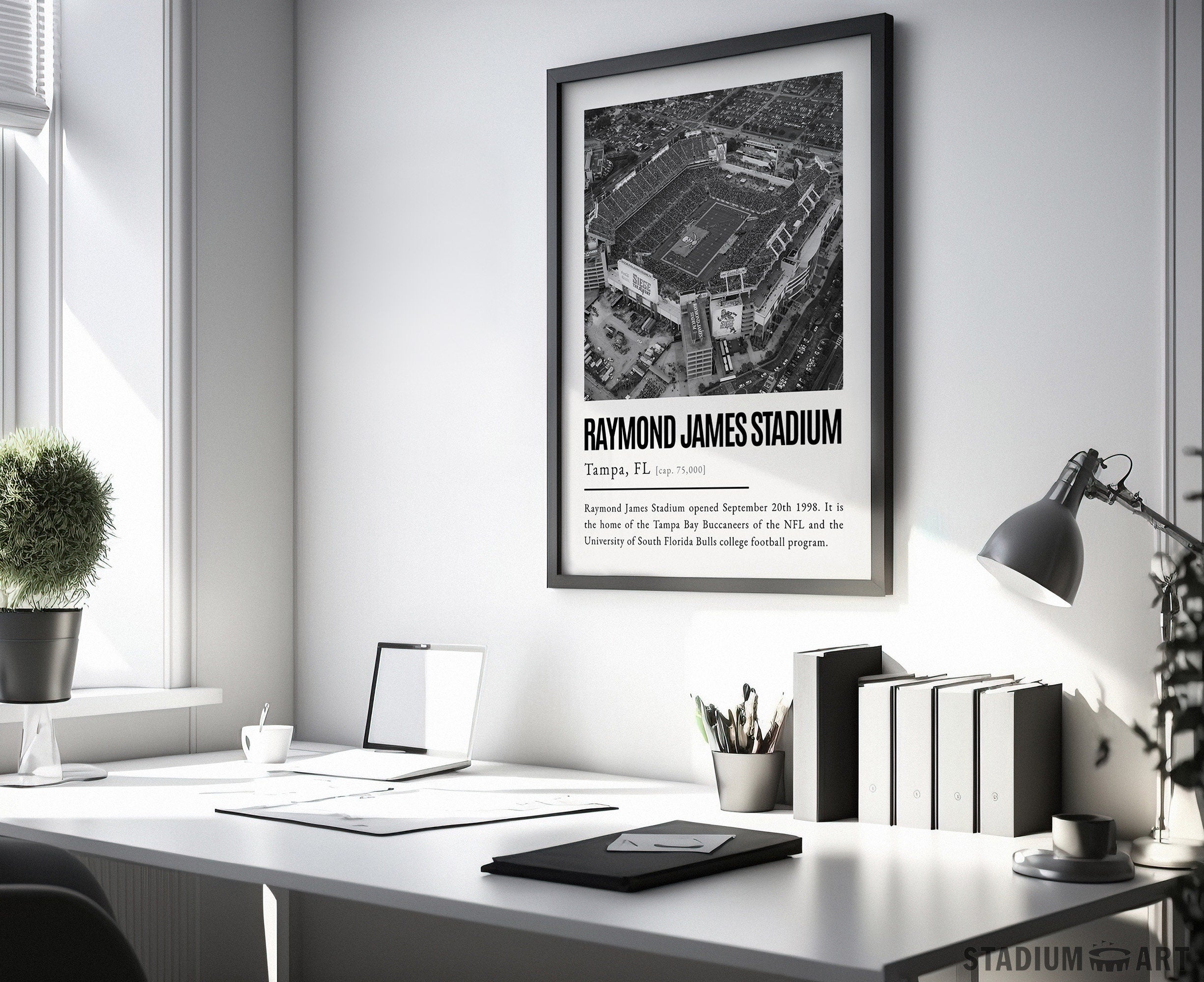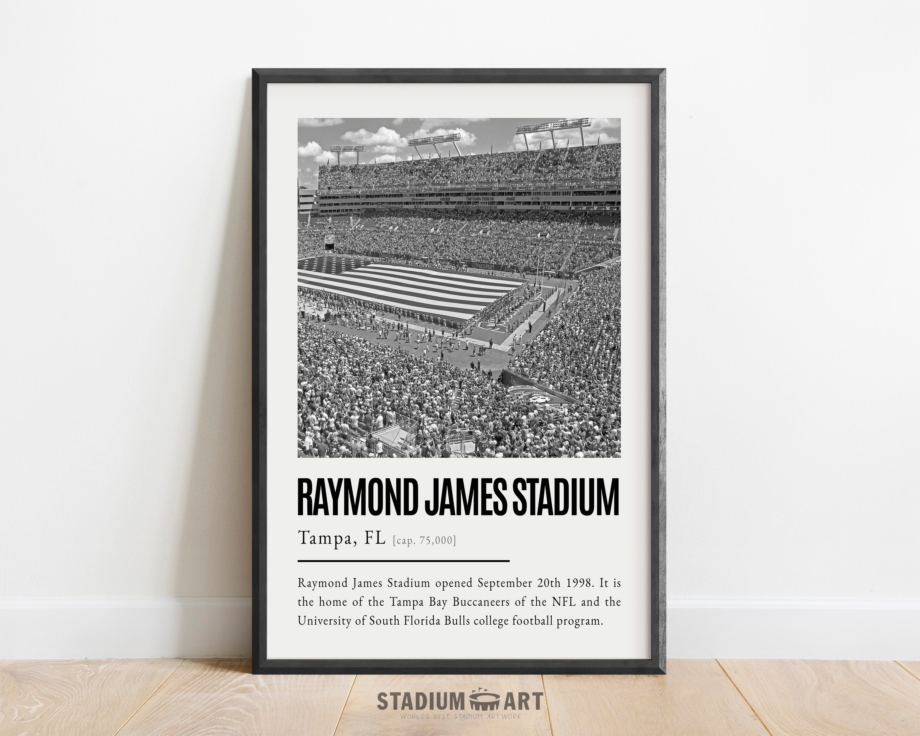 Raymond James Stadium Print, Tampa Bay Buccaneers Poster/Canvas, Seat View, B&W Modern Football Wall Art Decor, Game Day Keepsake