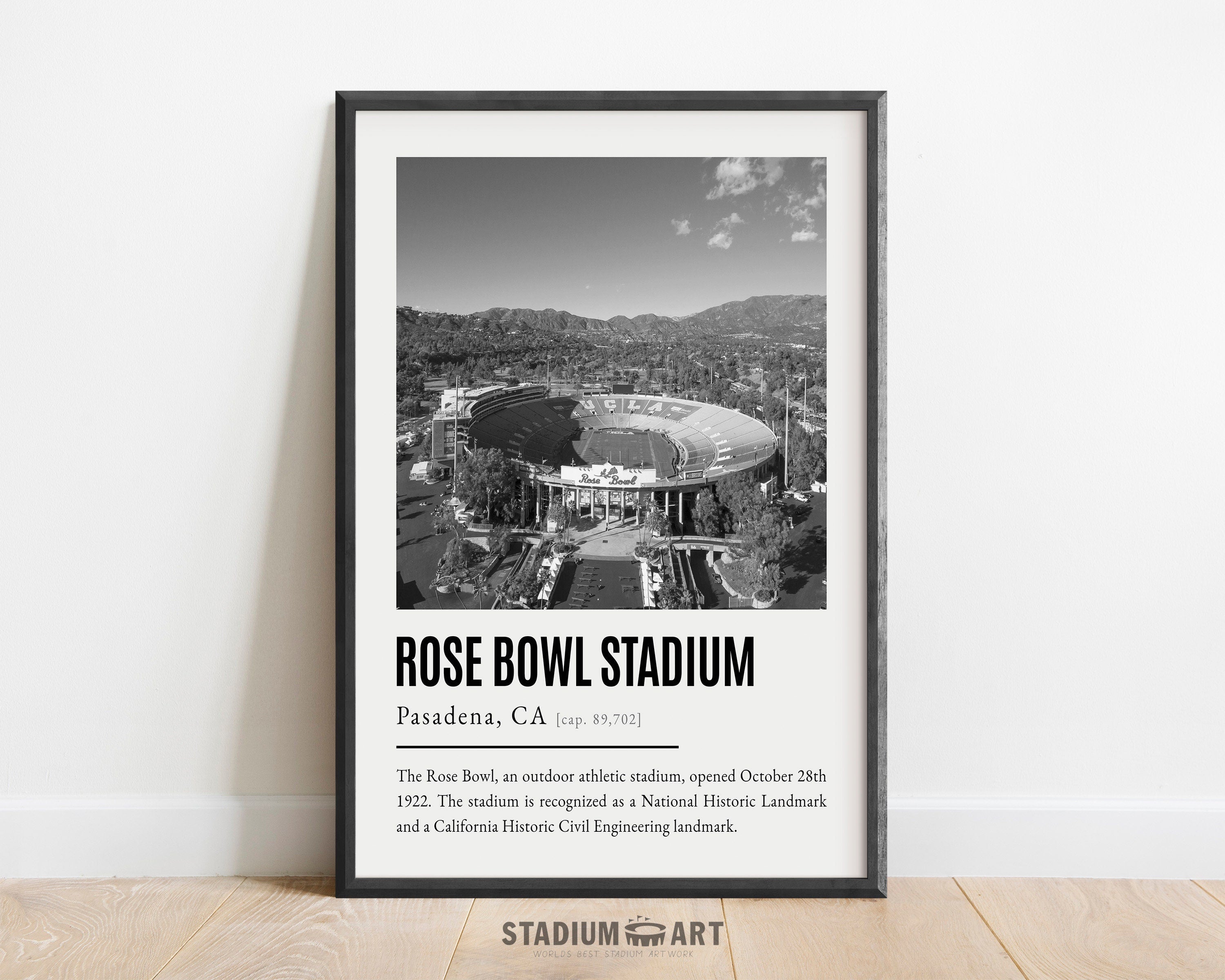 Rose Bowl Stadium Print, UCLA Bruins Poster/Canvas, Aerial View, B&W Modern Football Wall Art Decor, Game Day Keepsake