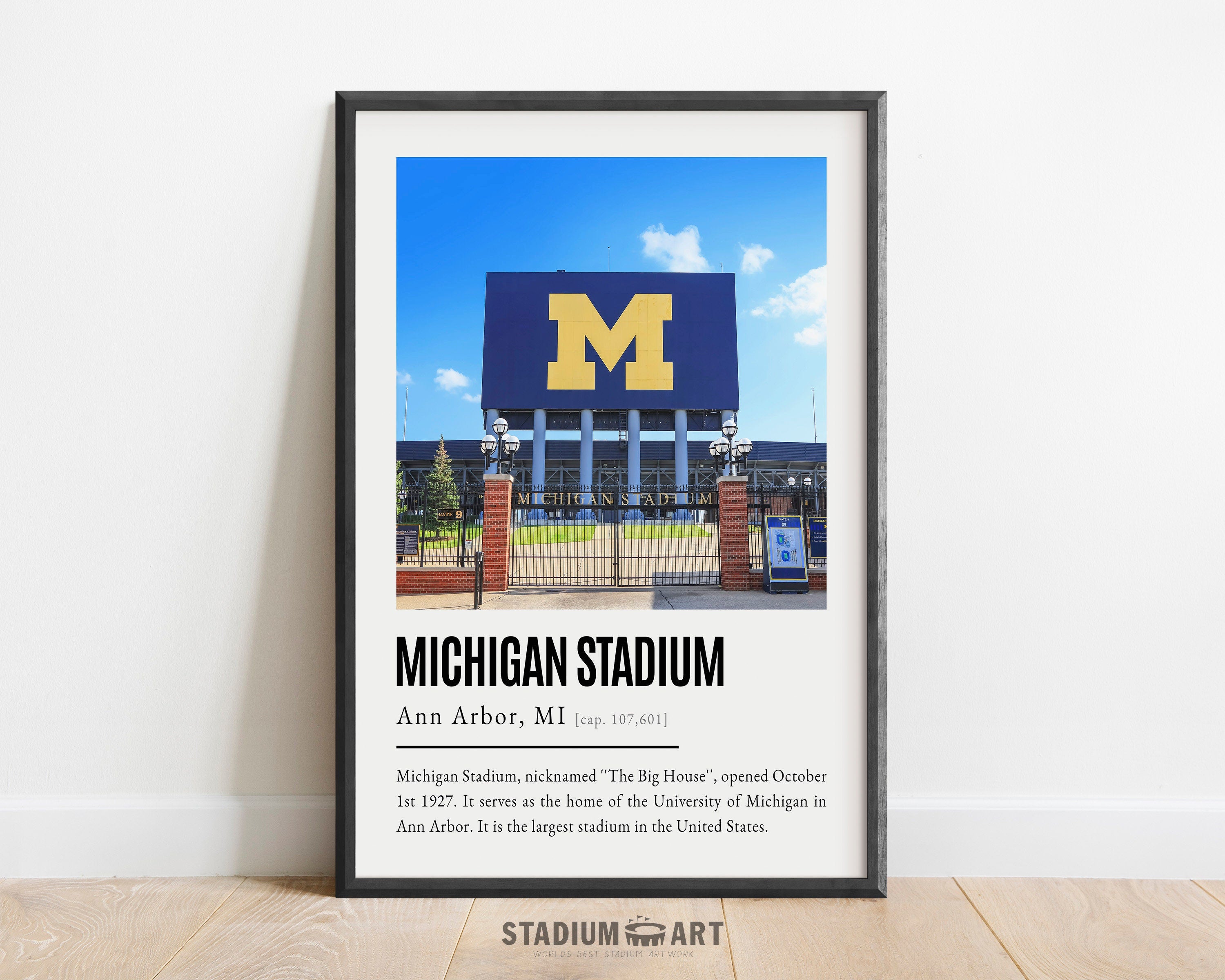 Michigan Stadium Print, Michigan Wolverines Poster/Canvas, Street View, Modern Football Wall Art Decor, Game Day Keepsake