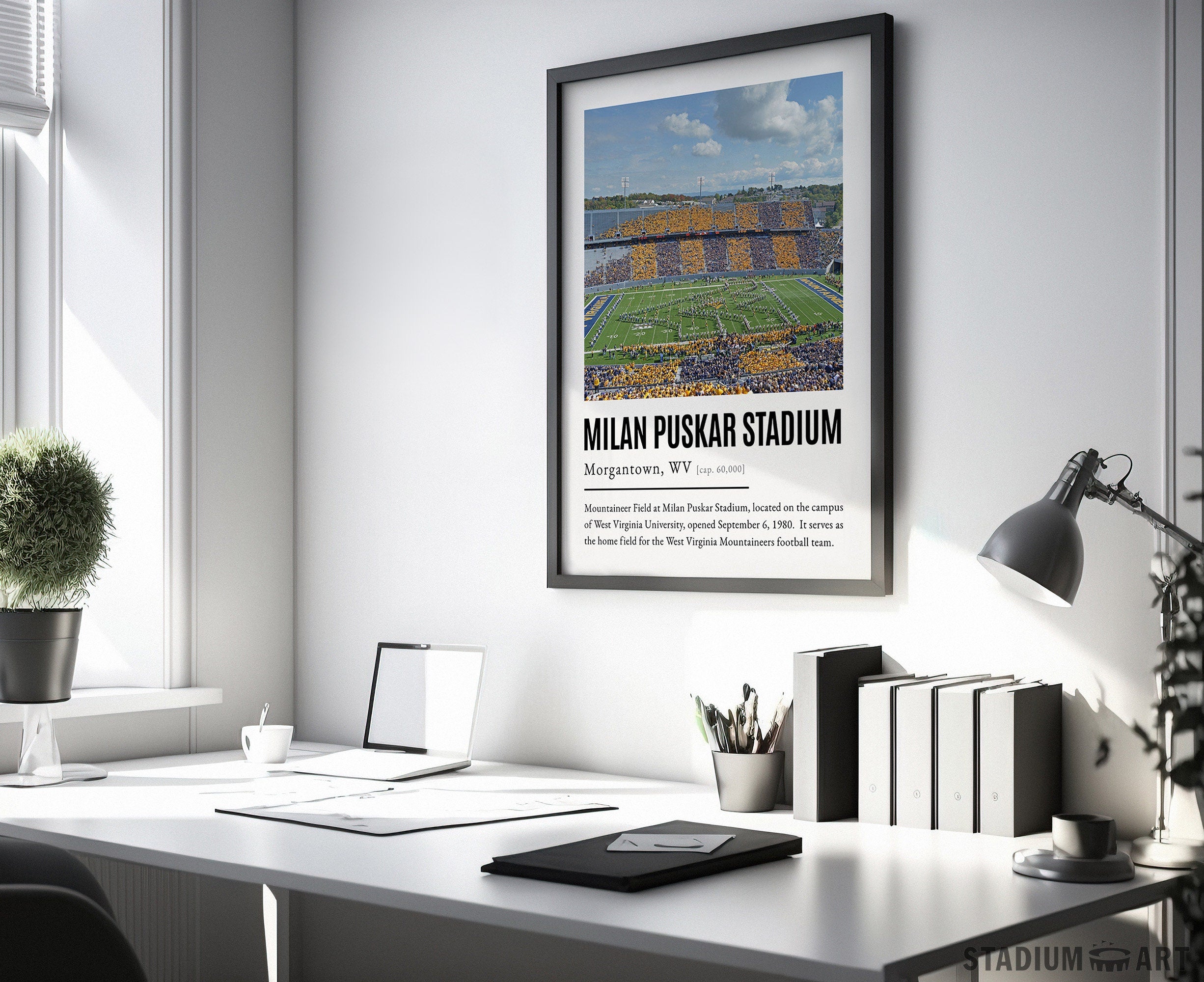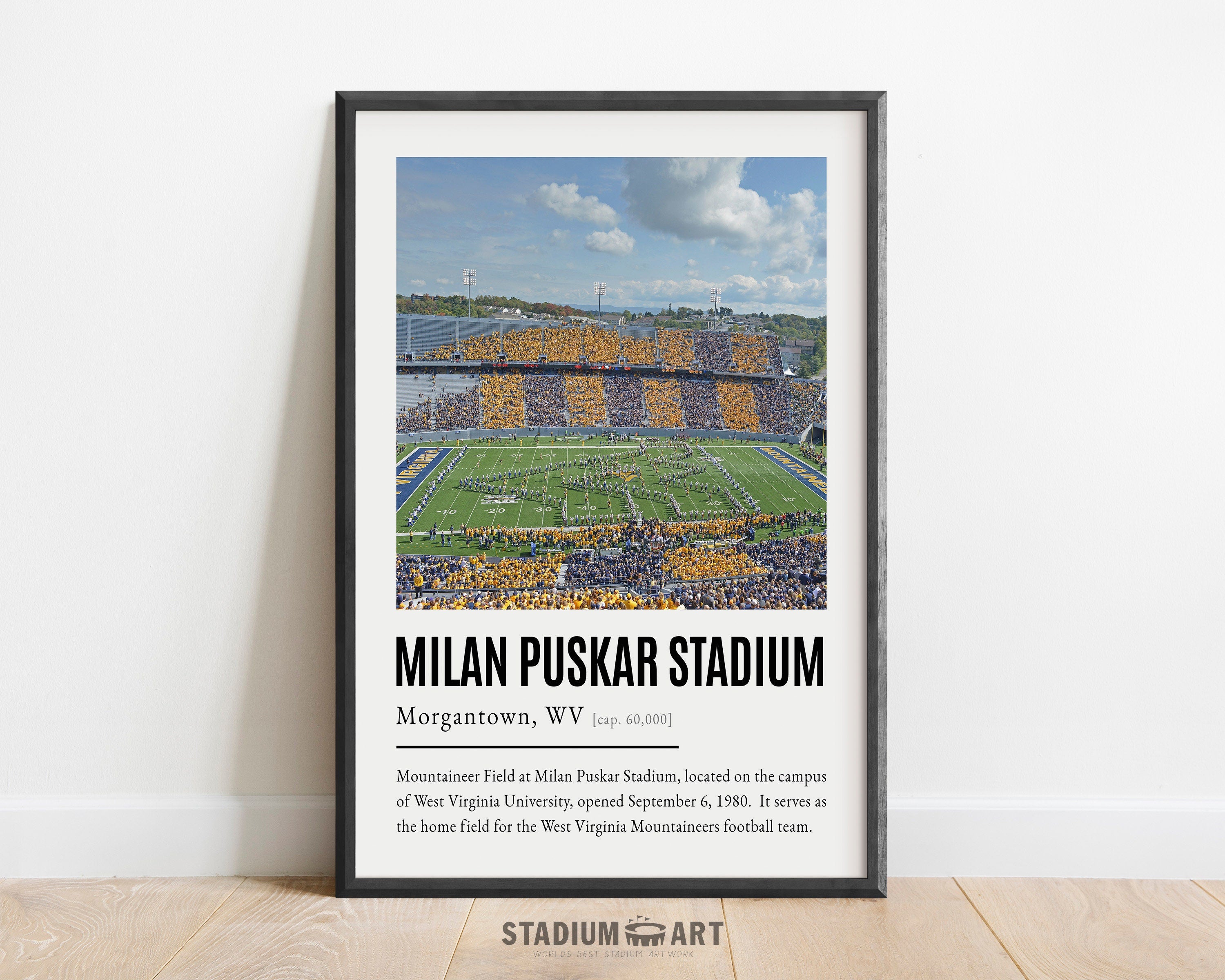 Milan Puskar Stadium Print, Virginia Mountaineers Poster/Canvas, Seat View, Modern Football Wall Art Decor, Game Day Keepsake