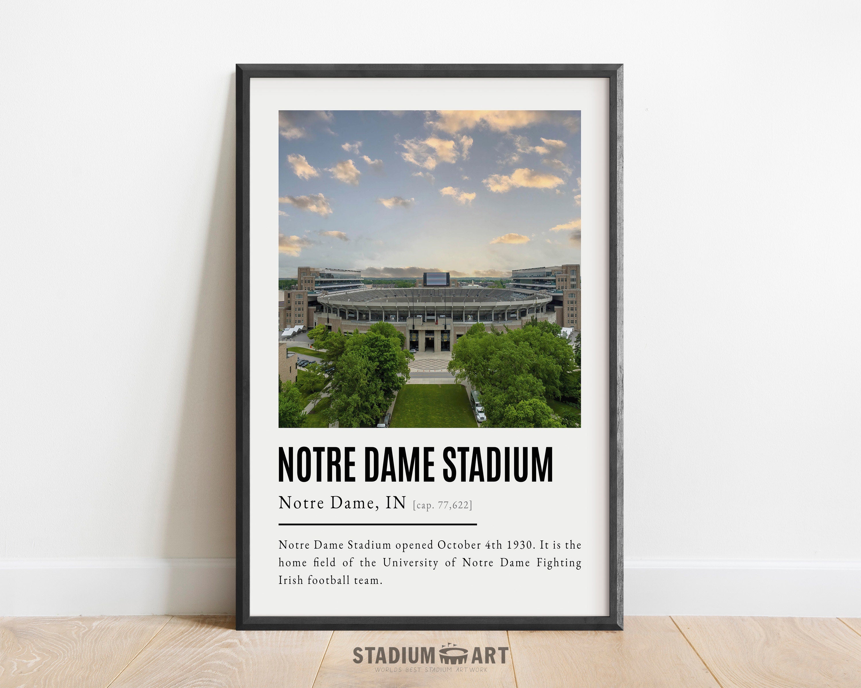 Notre Dame Stadium Print, Notre Dame Fighting Irish Poster/Canvas, Aerial View, Modern Football Wall Art Decor, Game Day Keepsake