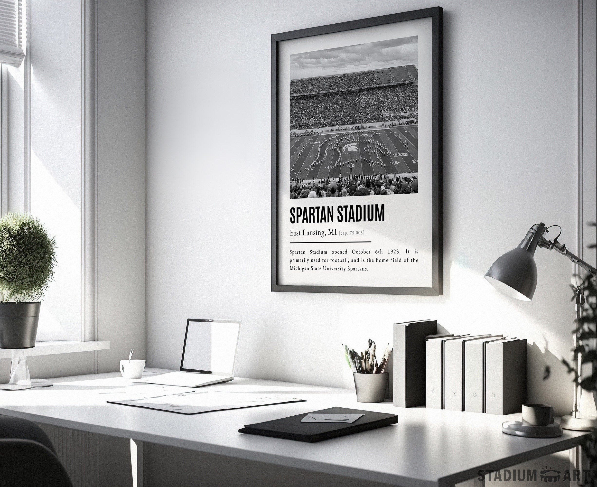 Spartan Stadium Print, Michigan State University Spartans Poster/Canvas, Seat View, B&W Modern Football Wall Art Decor, Game Day Keepsake