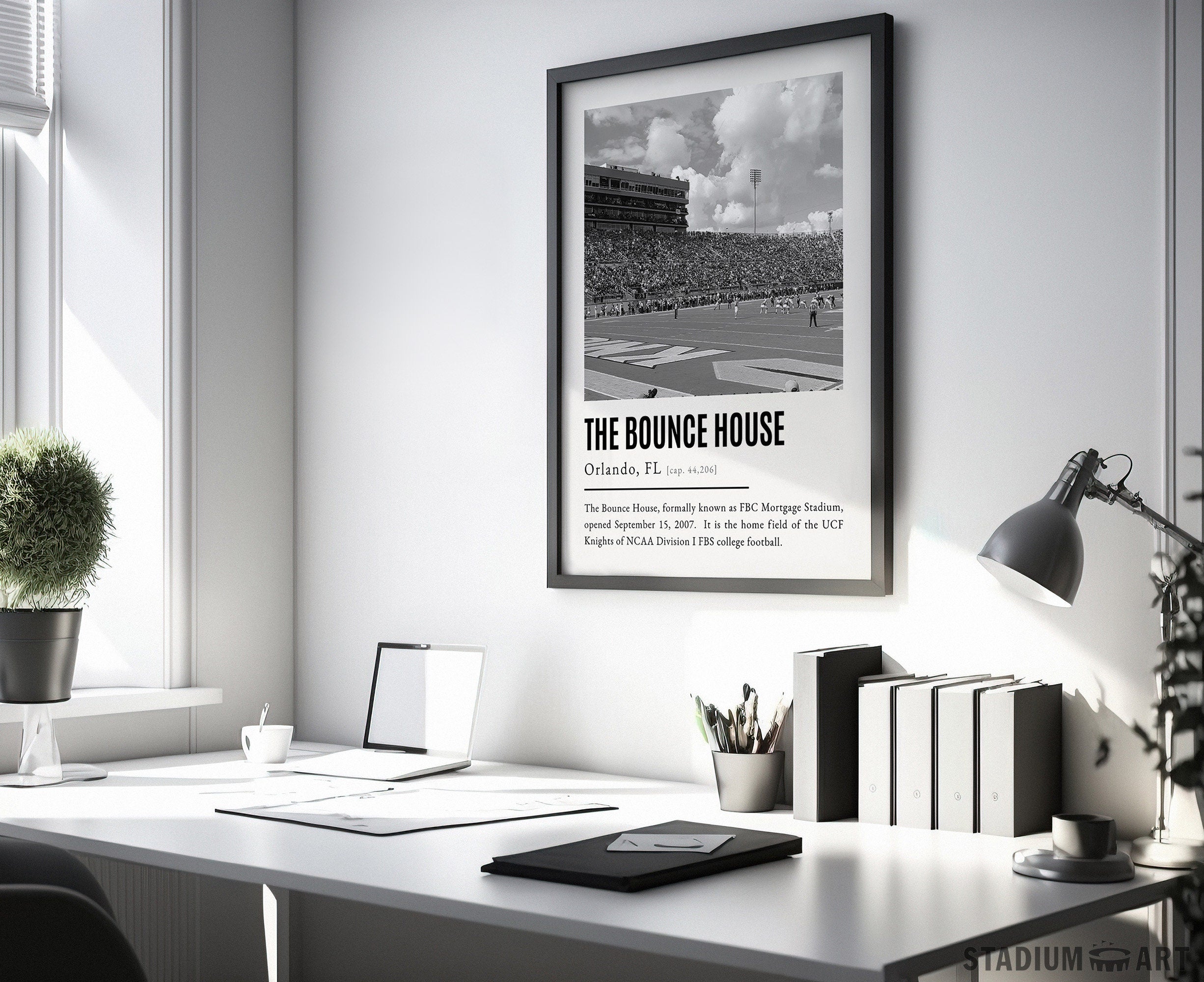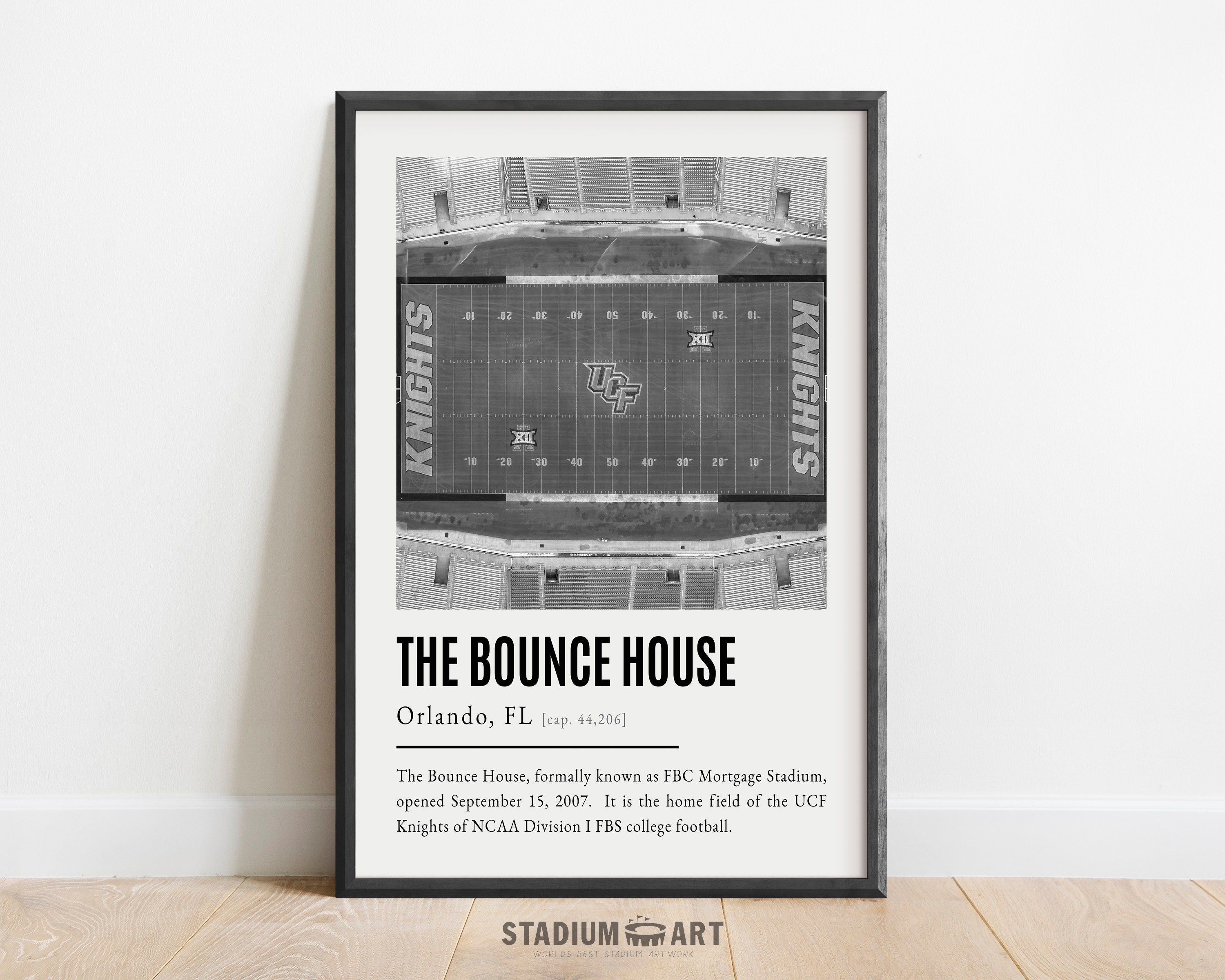 The Bounce House Print, UCF Knights Poster/Canvas, Seat View, B&W Modern Football Wall Art Decor, Game Day Keepsake