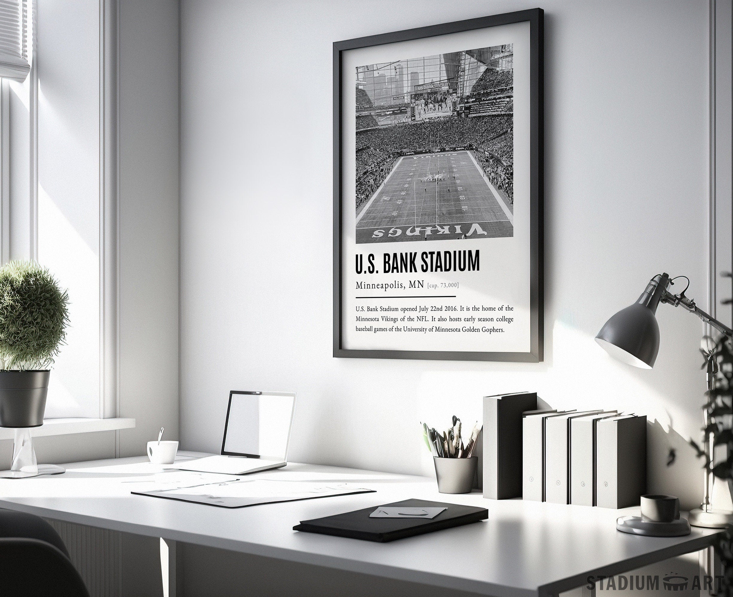 U.S. Bank Stadium Print, Minnesota Vikings Poster/Canvas, Seat View, B&W Modern Football Wall Art Decor, Game Day Keepsake