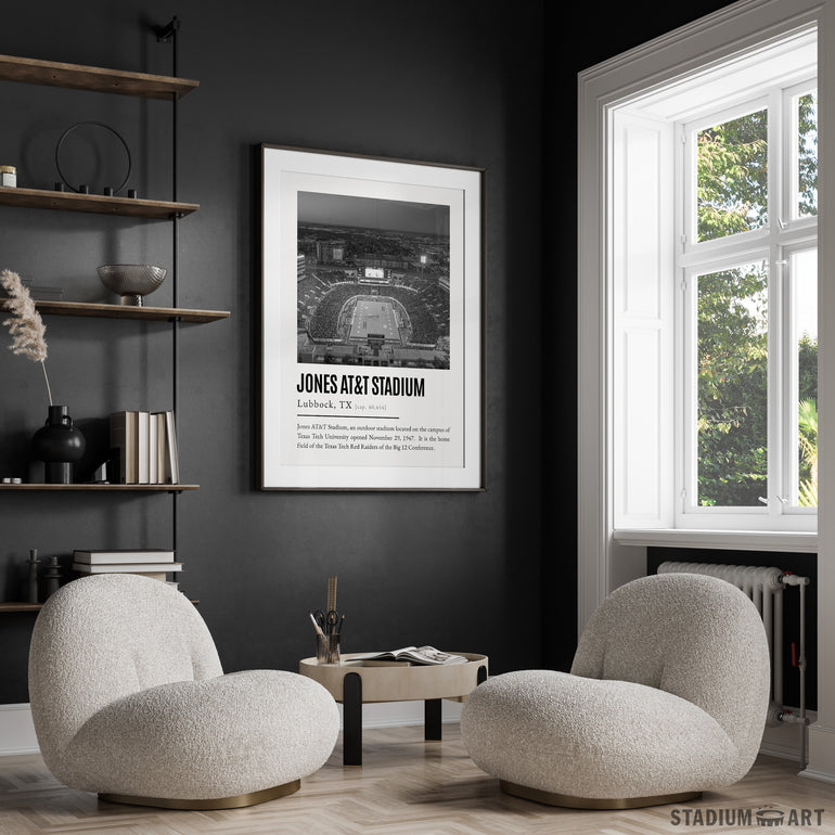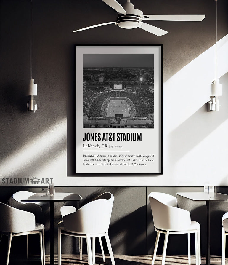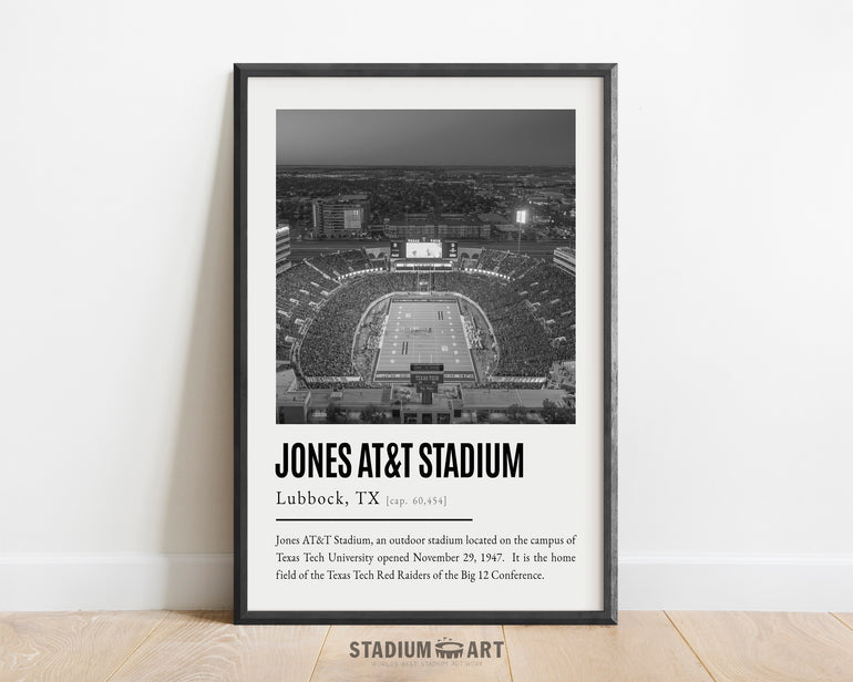 Jones ATT Stadium Print, Texas Tech Red Raiders Poster/Canvas, Aerial View, B&W Modern Art, Football Wall Art Decor, Game Day Keepsake