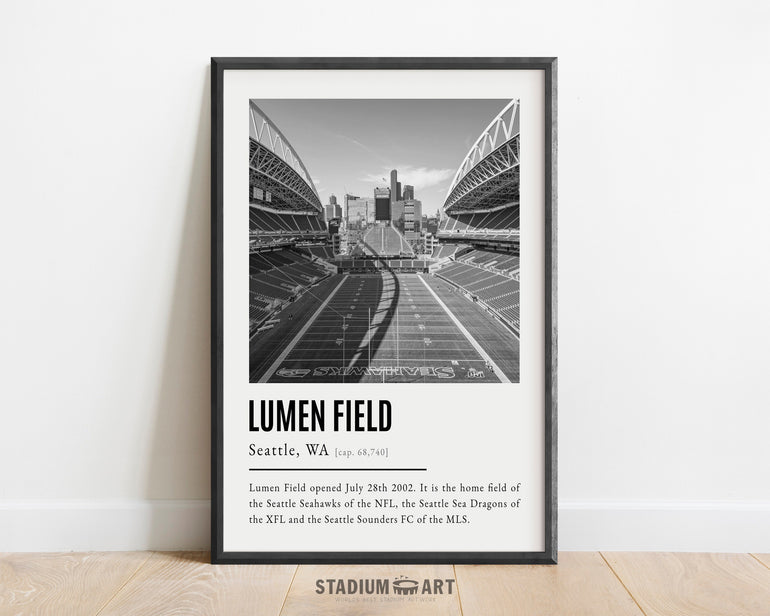Lumen Field Print, Seattle Seahawks Poster/Canvas, Seat View, B&W Modern Football Wall Art Decor, Game Day Keepsake