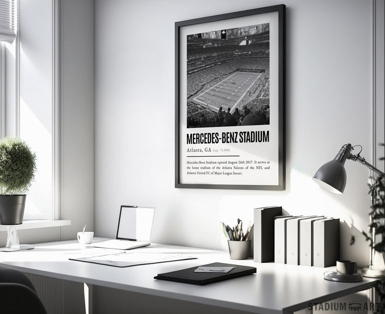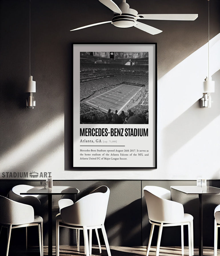 Mercedes-Benz Stadium Print, Atlanta Falcons Poster/Canvas, Seat View, B&W Modern Football Wall Art Decor, Game Day Keepsake
