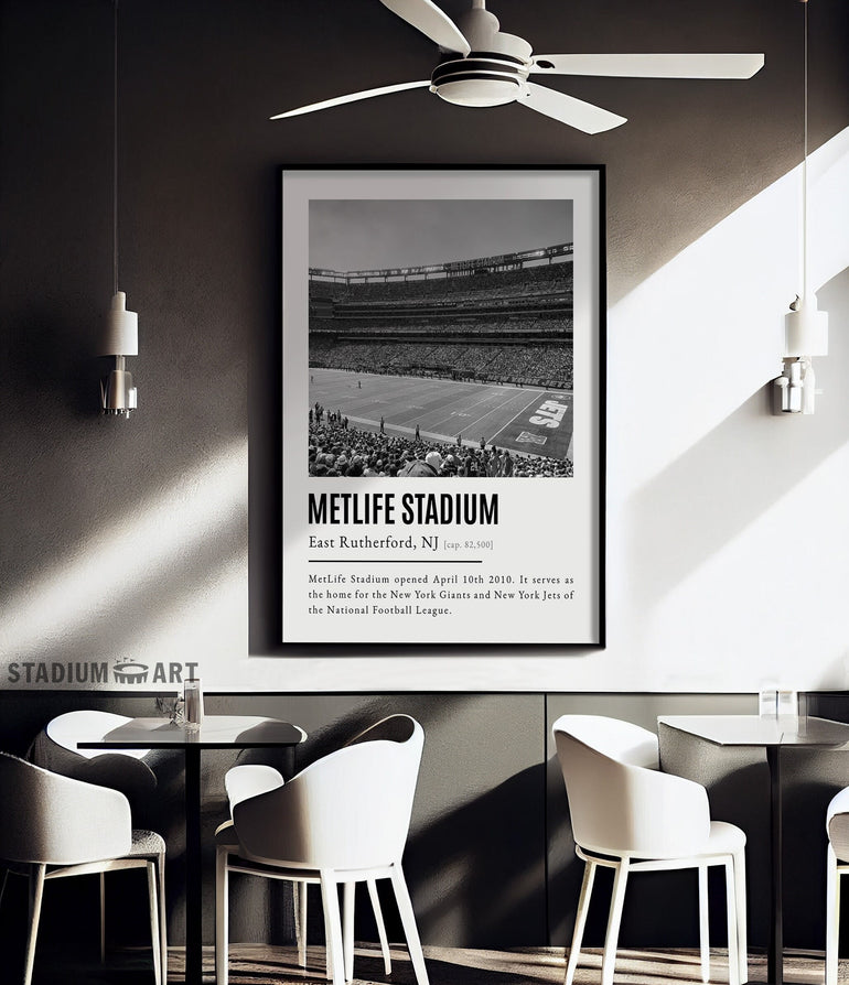 MetLife Stadium Print, New York Giants/Jets Poster/Canvas, Seat View, B&W Modern Football Wall Art Decor, Game Day Keepsake
