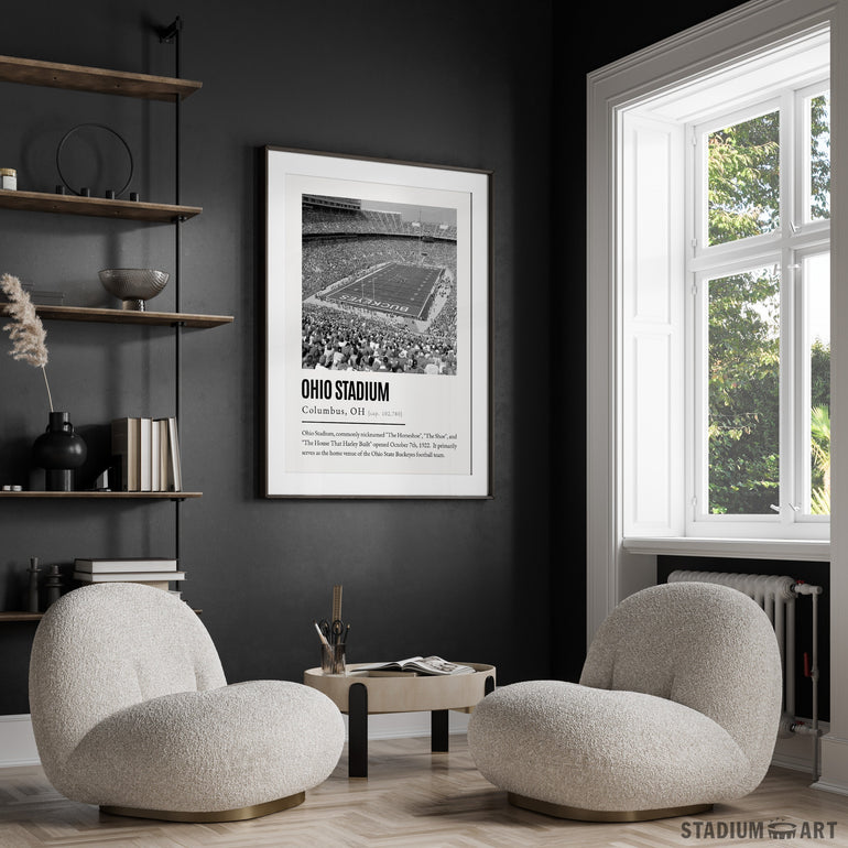 Ohio Stadium Print, Ohio State Buckeyes Poster/Canvas, Seat View, B&W Modern Football Wall Art Decor, Game Day Keepsake
