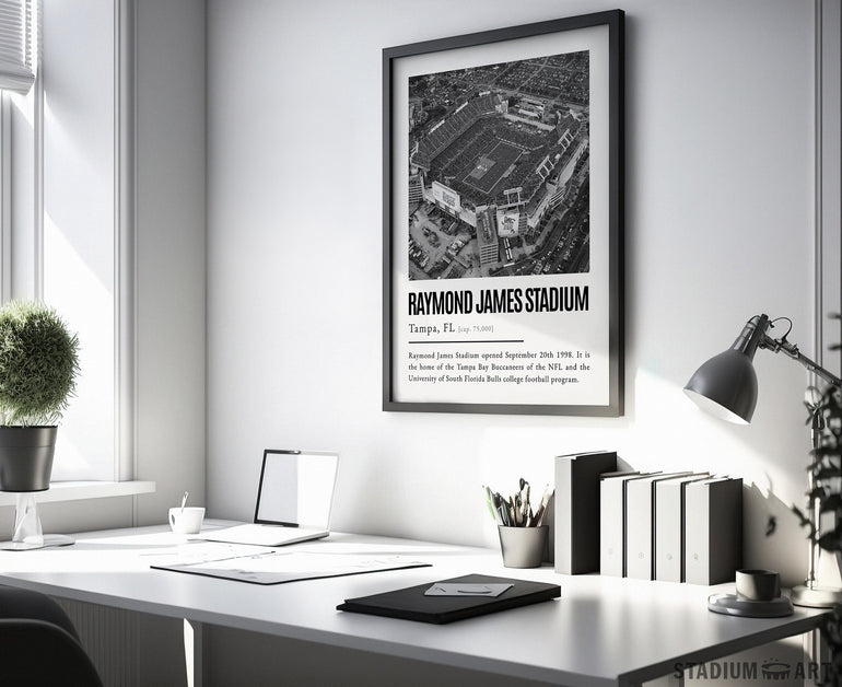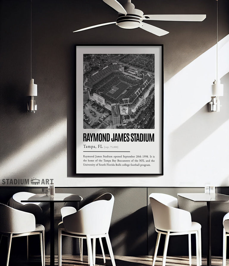 Raymond James Stadium Print, Tampa Bay Buccaneers Poster/Canvas, Aerial View, B&W Modern Football Wall Art Decor, Game Day Keepsake
