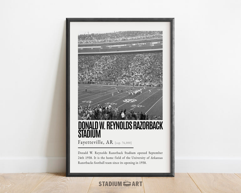 Razorback Stadium Print, Arkansas Razorbacks Poster/Canvas, Seat View (v2), B&W Modern Art, Football Wall Art Decor, Game Day Keepsake