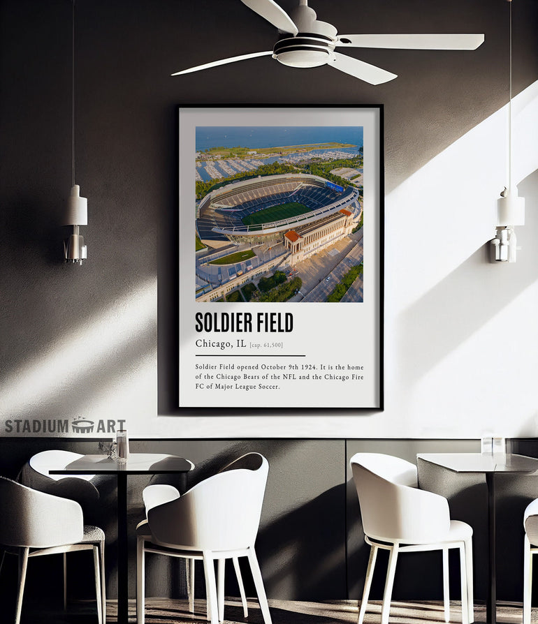 Soldier Field Print, Chicago Bears Poster/Canvas, Aerial View, Modern Football Wall Art Decor, Game Day Keepsake