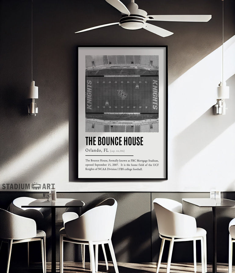 The Bounce House Print, UCF Knights Poster/Canvas, Aerial (Top) View, B&W Modern Football Wall Art Decor, Game Day Keepsake