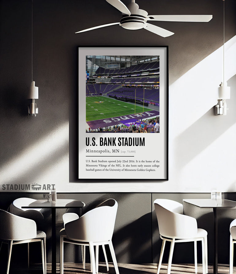 U.S. Bank Stadium Print, Minnesota Vikings Poster/Canvas, Seat View, Modern Football Wall Art Decor, Game Day Keepsake