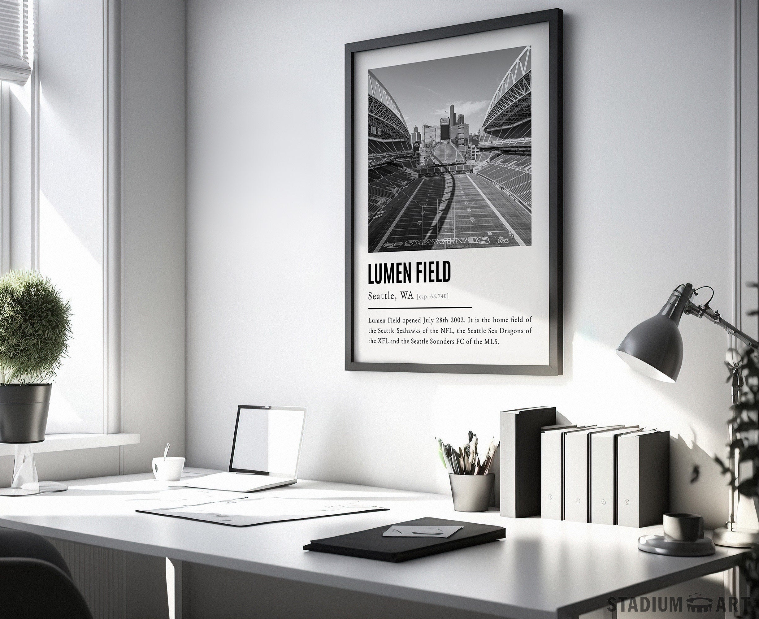 Lumen Field Print, Seattle Seahawks Poster/Canvas, Seat View, B&W Modern Football Wall Art Decor, Game Day Keepsake